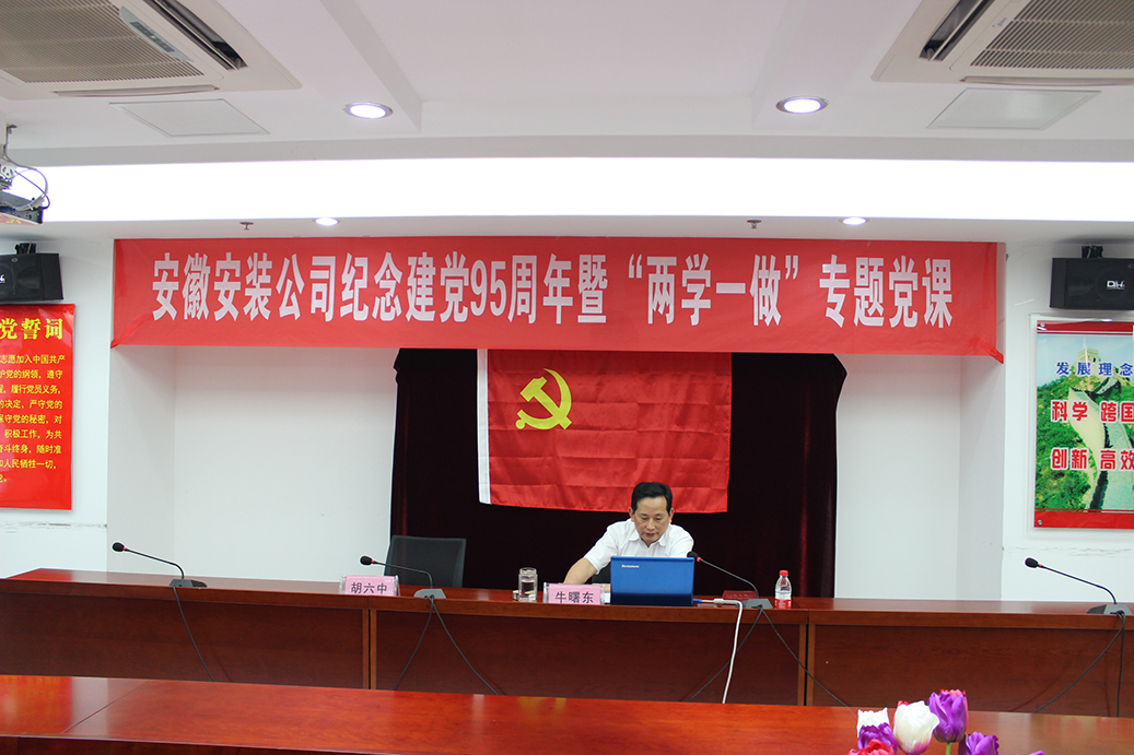為了使廣大黨員深刻理解開(kāi)展“學(xué)黨章黨規(guī)、學(xué)系列講話,做合格黨員”學(xué)習(xí)教育的重大意義,幫助廣大黨員明晰學(xué)習(xí)教育內(nèi)容、途徑與方法,確?!皟蓪W(xué)一做”學(xué)習(xí)教育取得實(shí)效。6月29日下午, 集團(tuán)公司黨委副書(shū)記牛曙東到聯(lián)系點(diǎn)單位---安徽安裝公司開(kāi)展“兩學(xué)一做”專(zhuān)題
