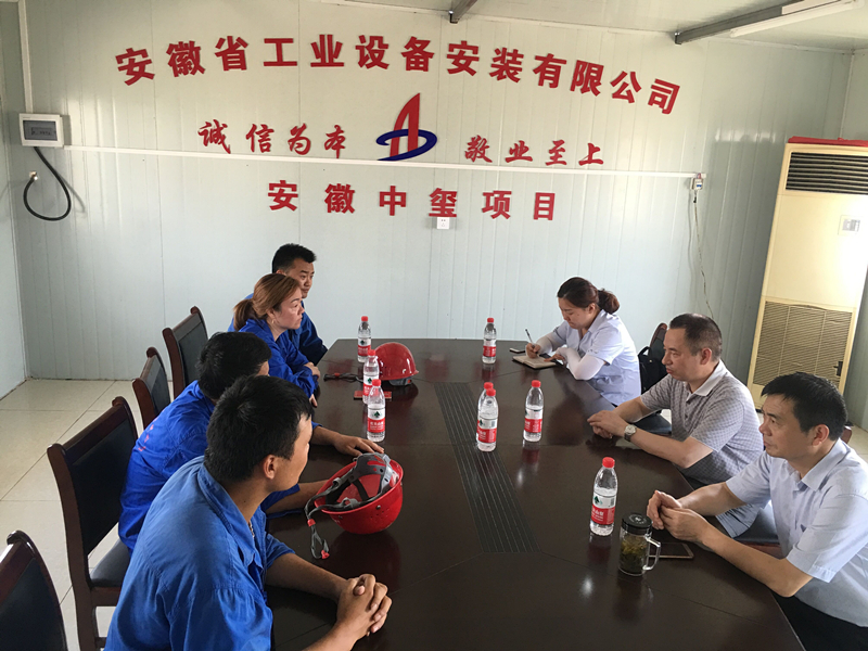 胡六中書(shū)記一行首先在施工現(xiàn)場(chǎng)仔細(xì)詢問(wèn)了工程進(jìn)展情況和高溫期間工人們的工作時(shí)間安排情況,每到一處都親切的與施工人員交談,感謝他們的努力與奉獻(xiàn),囑咐他們?cè)谧⒁夥朗罱禍氐耐瑫r(shí),也一定要注意施工安全。隨后,在中璽項(xiàng)目部會(huì)議室,胡書(shū)記在聽(tīng)取項(xiàng)目經(jīng)理李子鳳就施工進(jìn)度、安全生產(chǎn)、技術(shù)質(zhì)量、文明施工等工作匯報(bào)后指出,要根據(jù)夏季高溫天氣的特點(diǎn)合理安排作息時(shí)間,要將防暑用品及時(shí)發(fā)送到每一位員工手中,保證以健康的身體投入到緊張的工作中,提高安全意識(shí),確保施工安全。