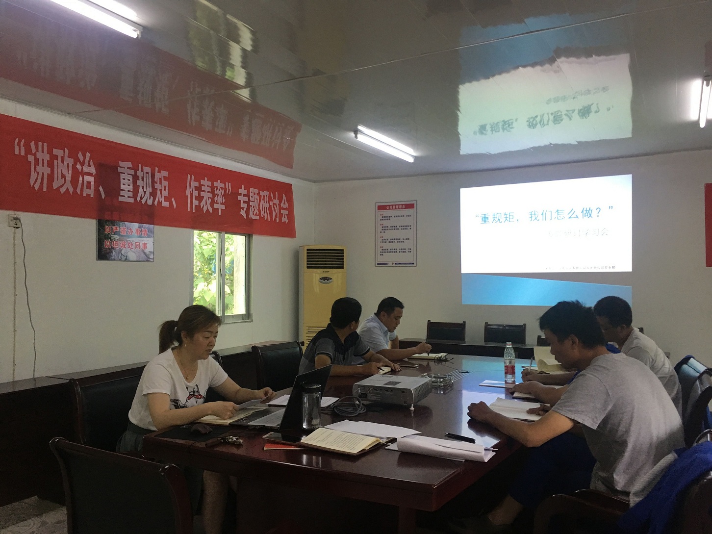 8月11日下午,安慶分公司黨支部圍繞“講政治、重規(guī)矩、作表率”專題教育第二專題——“重規(guī)矩,我們?cè)趺醋觥闭匍_學(xué)習(xí)研討會(huì),分公司黨員參加會(huì)議,會(huì)議由支部書記劉紅艷主持。