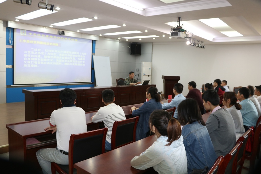 政治處主任周玉兵圍繞中美貿(mào)易摩擦升級進行了國防形勢教育,并就產(chǎn)生的歷史背景、原因、對國家乃至世界產(chǎn)生的多方影響等內(nèi)容與在座進行了交流,有助于團員青年理性看待時事熱點,樹立正確的輿論導向。