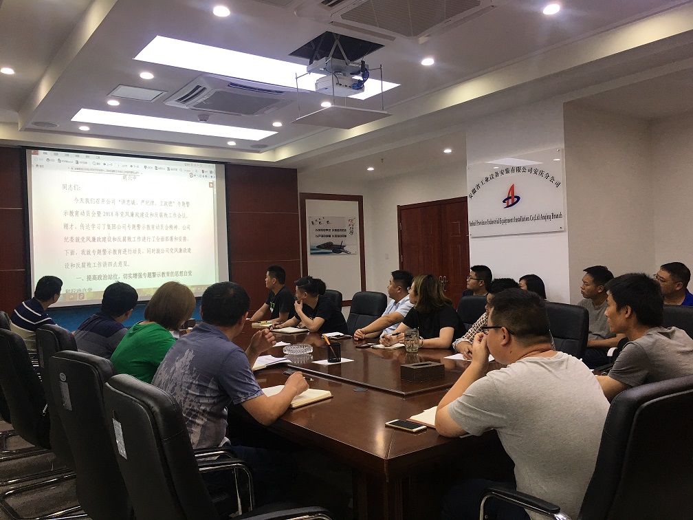 會(huì)上,黨支部書(shū)記劉紅艷首先傳達(dá)了公司2018年黨風(fēng)廉政建設(shè)和反腐敗工作會(huì)議精神及公司黨委關(guān)于“講忠誠(chéng)、嚴(yán)紀(jì)律、立政德”專題警示教育的安排意見(jiàn),并帶領(lǐng)全體員工學(xué)習(xí)黨委書(shū)記、副總經(jīng)理胡六中及黨委委員、紀(jì)委書(shū)記李寬旭在2018年黨風(fēng)廉政建設(shè)和反腐敗工作會(huì)議上講話精神。