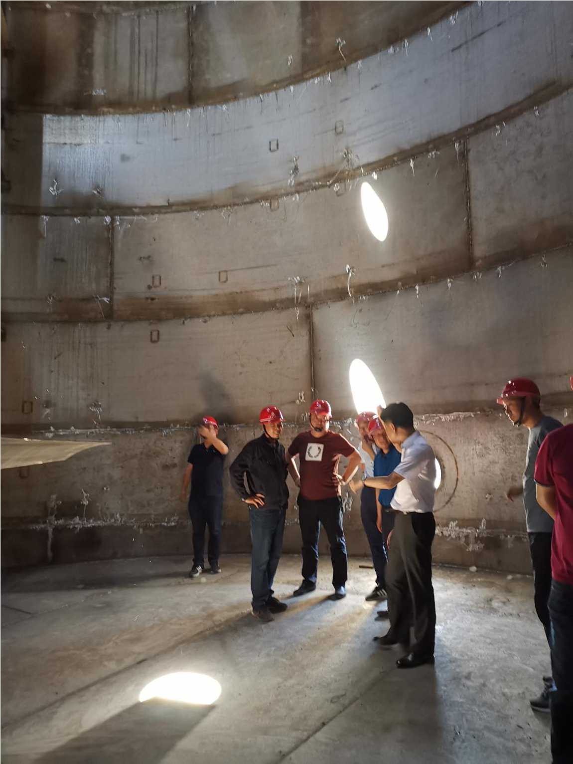 出發(fā)前,合肥分公司經(jīng)理趙永峰作了動(dòng)員強(qiáng)調(diào),他指出,本次觀摩工業(yè)項(xiàng)目是我們學(xué)習(xí)的榜樣,每一位同志都要珍惜這次難得的學(xué)習(xí)機(jī)會(huì),到工地后要實(shí)地細(xì)致觀察,認(rèn)真聽取講解,設(shè)身處地思考,力爭(zhēng)取得實(shí)效。上午全體人員到達(dá)宿州中糧項(xiàng)目工地后,受到了蚌埠分公司領(lǐng)導(dǎo)和項(xiàng)目部全體干部員工的熱烈歡迎,分公司經(jīng)理趙銘亮、生產(chǎn)副經(jīng)理張漢軍親自擔(dān)任現(xiàn)場(chǎng)講解。參觀隊(duì)伍在兩位經(jīng)理的帶領(lǐng)下,深入現(xiàn)場(chǎng)分別參觀了乙醇罐體群、發(fā)酵罐體群、以及冷水機(jī)組、工藝管線的安裝現(xiàn)場(chǎng),兩位經(jīng)理結(jié)合現(xiàn)場(chǎng)工程實(shí)體從本項(xiàng)目技術(shù)重難點(diǎn)、施工工藝、安全管理等方面向合肥分公司的同事們進(jìn)行一一的講解。在施工現(xiàn)場(chǎng),大家結(jié)合自身專業(yè)實(shí)際尋找切入點(diǎn)針對(duì)性地進(jìn)行觀摩學(xué)習(xí),唯恐落下一個(gè)可以學(xué)習(xí)的機(jī)會(huì),詳細(xì)記錄現(xiàn)場(chǎng)優(yōu)秀的施工做法,針對(duì)有疑問的地方及時(shí)向相應(yīng)專業(yè)技術(shù)負(fù)責(zé)人詢問解決辦法。