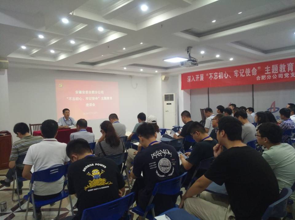 為深入開展“不忘初心,牢記使命”主題教育活動(dòng),將主題教育落到實(shí)處、產(chǎn)生實(shí)效,切實(shí)加強(qiáng)分公司黨員干部的責(zé)任感、使命感、擔(dān)當(dāng)感,合肥分公司黨支部于7月17日下午在公司十五樓職工之家召開了“不忘初心,牢記使命”主題教育座談會(huì),分公司領(lǐng)導(dǎo)班子成員、機(jī)關(guān)全體人員、在肥項(xiàng)目部人員共計(jì)40余人參與會(huì)議。會(huì)議由分公司黨支部書記胡迎東主持。