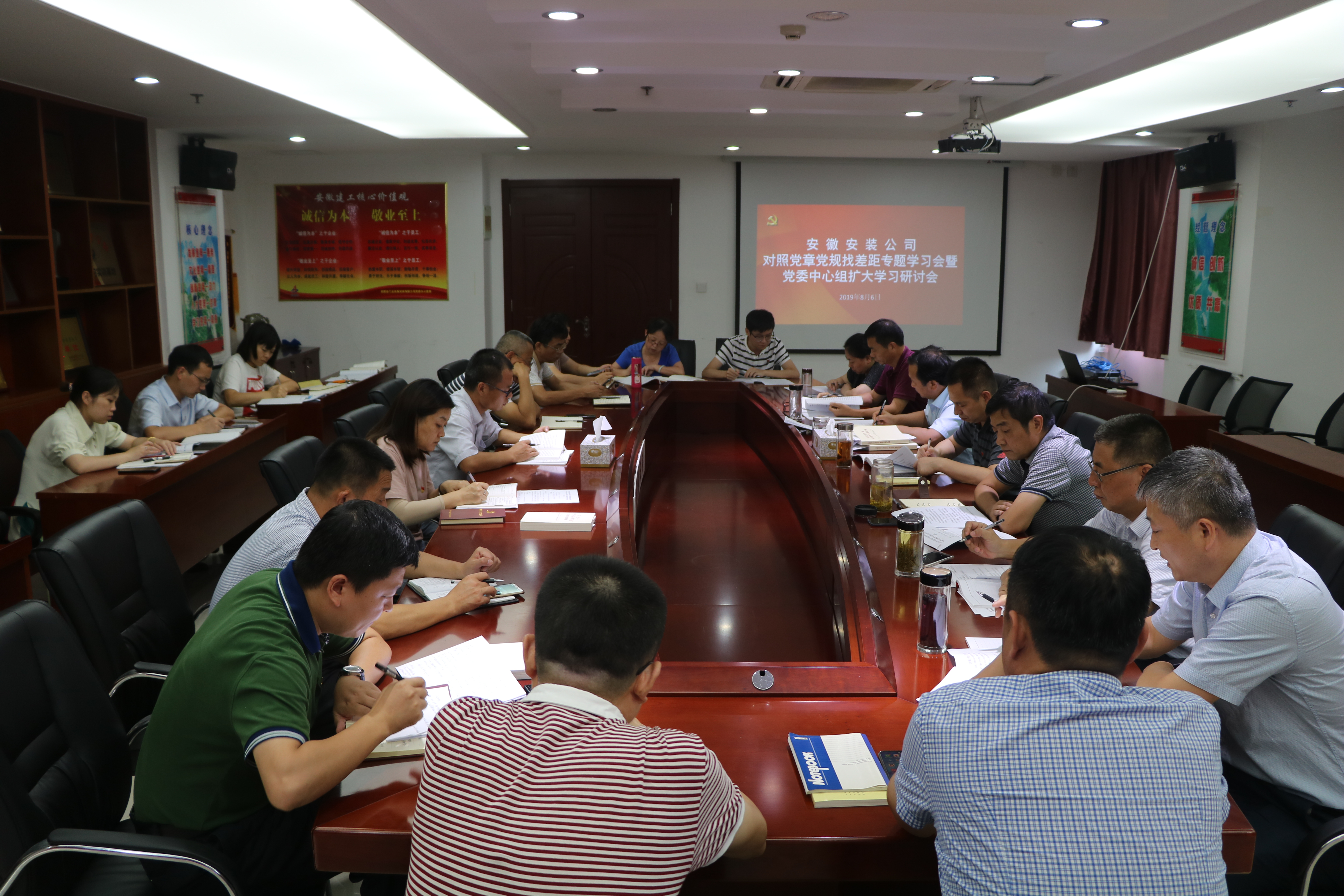 8月6日下午,安徽安裝公司黨委組織召開對(duì)照黨章黨規(guī)找差距專題學(xué)習(xí)會(huì)暨黨委中心組擴(kuò)大學(xué)習(xí)研討會(huì),公司領(lǐng)導(dǎo)班子成員、機(jī)關(guān)部門負(fù)責(zé)人參加會(huì)議,黨委委員、紀(jì)委書記、工會(huì)主席李寬旭主持會(huì)議。