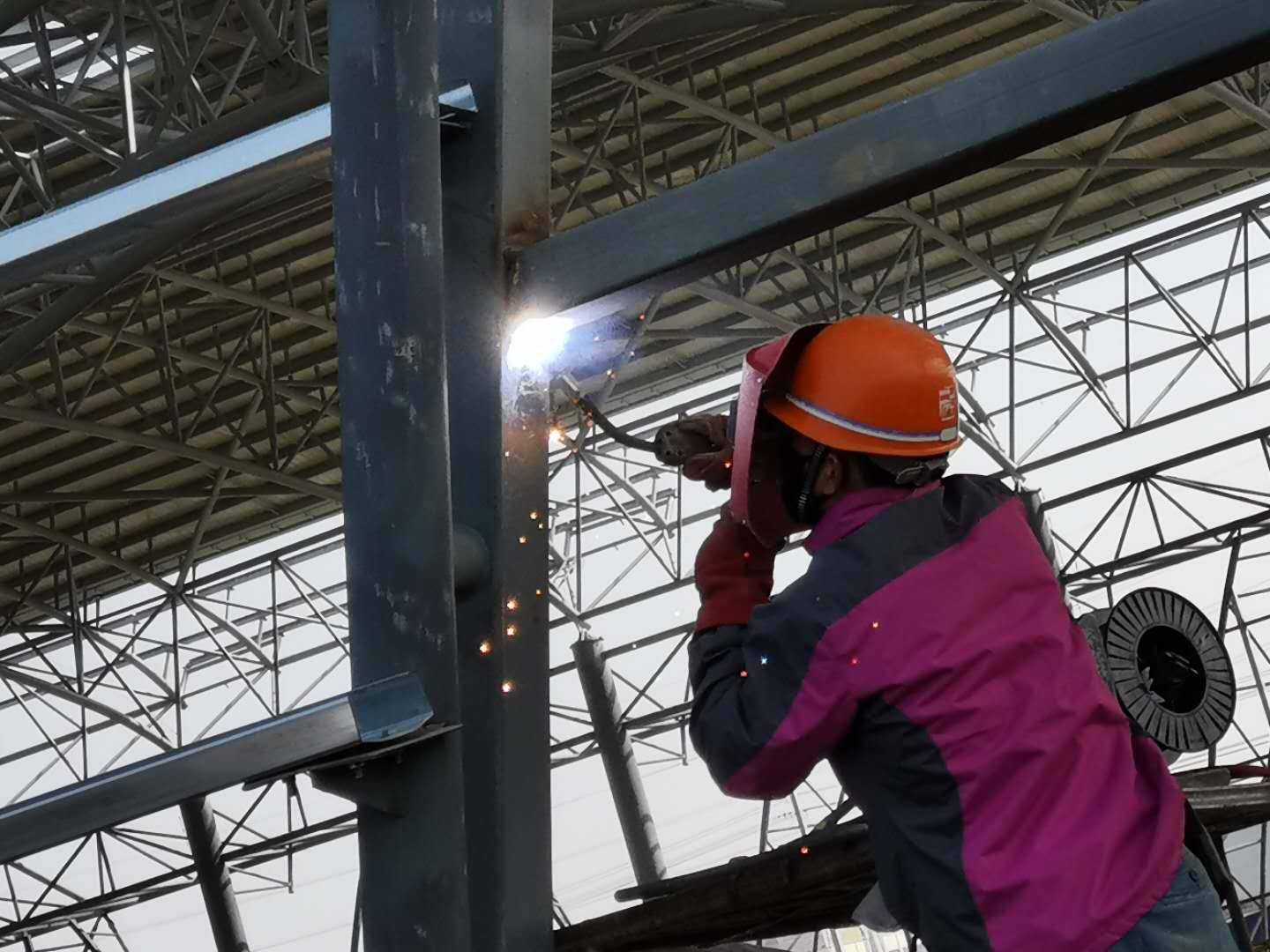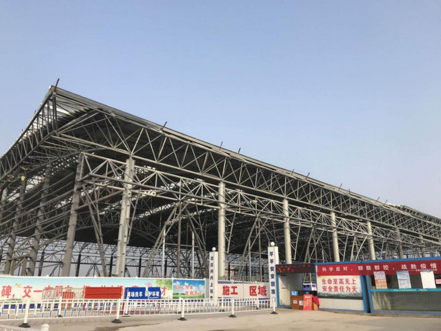 安徽省·水利部淮河水利委員會水利科學研究院淮河試驗研究中心(水工河工模型試驗廳)一期工程,水工河工模型試驗廳主要進行各種水流模型試驗,通過整體水工模型試驗,率定泄洪閘、排沙孔泄流能力、描述進出口水流流態(tài),對護岸范圍提出合理的防護方式,優(yōu)化泄洪消能建筑物布置和體型等發(fā)揮巨大作用。項目主要施工內(nèi)容為新建水工河工模型試驗一廳鋼結(jié)構(gòu)及附屬土建工程,建筑面積約20000㎡,基礎形式為長螺旋鉆孔灌注樁,結(jié)構(gòu)形式為排架柱(圓鋼管)+三肢管桁架結(jié)構(gòu),頂部成弧形空間結(jié)構(gòu)形式,桁架跨度約100m,跨中為四聯(lián)拱(三角桁架),安裝高度最高24m,鋼材用量1800多噸,為目前安徽省建設第二大跨度的鋼結(jié)構(gòu)工程。目前,該項目整體鋼結(jié)構(gòu)建設已基本完成,主要施工內(nèi)容是水電安裝、裝飾、幕墻各個分項建設。