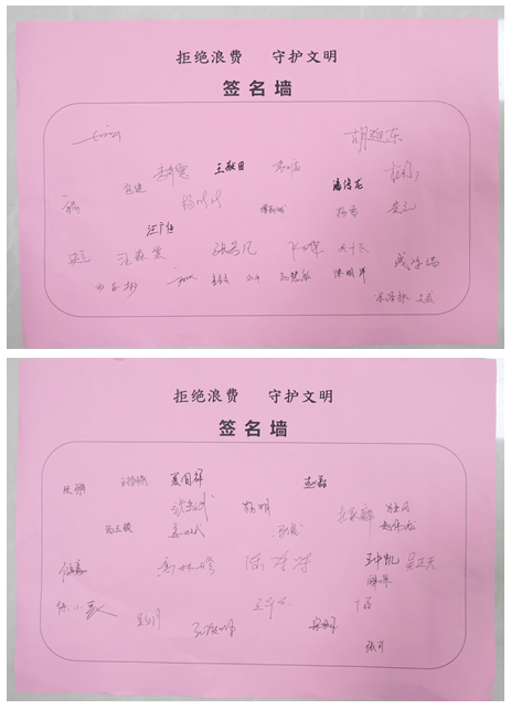 “近日,習(xí)近平總書記對制止餐飲浪費行為作出重要指示,要求切實培養(yǎng)節(jié)約習(xí)慣,在全社會營造浪費可恥、節(jié)約為榮的氛圍。這警示我們要時刻繃緊厲行節(jié)約、反對浪費這根弦,堅決抵制各種浪費現(xiàn)象,自覺從日常的餐飲到辦公浪費做起,努力形成人人節(jié)約、處處節(jié)儉的良好習(xí)慣……”黨支部書記胡迎東在作出活動強(qiáng)調(diào)后,進(jìn)一步宣讀了《“拒絕浪費 守護(hù)文明”倡議書》,并號召廣大黨員職工尤其是黨員干部,要帶頭發(fā)揚中華民族勤儉節(jié)約的傳統(tǒng)美德,自覺提高自身文明素質(zhì),積極做文明的倡導(dǎo)者、引領(lǐng)者和踐行者。隨后,在場的所有人員依次在倡議書上簽字,以表厲行勤儉節(jié)約、反對鋪張浪費的決心。