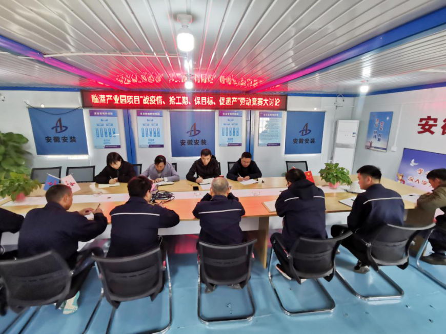 為認(rèn)真貫徹集團(tuán)公司“戰(zhàn)疫情、搶工期、保目標(biāo)、促超產(chǎn)”勞動競賽活動精神,11月19日下午,安徽安裝公司圍繞“不能按時交工為恥辱”的履約意識,在臨港項目部會議室組織開展“戰(zhàn)疫情、搶工期、保目標(biāo)、促超產(chǎn)”主題大討論活動。公司紀(jì)委書記、工會主席李寬旭,公司相關(guān)部門負(fù)責(zé)人,蚌埠分公司領(lǐng)導(dǎo)班子成員,項目管理人員等共計20余人參加會議,會議由李寬旭主持。