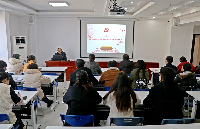 課上,江輝結(jié)合自身多年黨務(wù)知識,從“處理好機(jī)關(guān)黨支部建設(shè)與機(jī)關(guān)全面建設(shè)的關(guān)系”“處理好機(jī)關(guān)黨支部領(lǐng)導(dǎo)與機(jī)關(guān)行政領(lǐng)導(dǎo)的關(guān)系”“處理好機(jī)關(guān)黨務(wù)工作與業(yè)務(wù)工作的關(guān)系”三個(gè)方面深刻闡述了作為機(jī)關(guān)黨支部應(yīng)如何積極發(fā)揮作用。他指出,機(jī)關(guān)黨支部要充分認(rèn)清支部在機(jī)關(guān)全面建設(shè)中的重要地位和作用,機(jī)關(guān)黨員干部要不斷增強(qiáng)凝聚力和戰(zhàn)斗力,同時(shí)要注意理清機(jī)關(guān)黨支部領(lǐng)導(dǎo)與機(jī)關(guān)行政領(lǐng)導(dǎo)的區(qū)別與不同,要善于抓大事,善于處理好機(jī)關(guān)黨務(wù)工作與機(jī)關(guān)業(yè)務(wù)工作的關(guān)系,找準(zhǔn)黨務(wù)工作與業(yè)務(wù)工作的切入點(diǎn),加強(qiáng)機(jī)關(guān)黨支部建設(shè),持續(xù)推動各項(xiàng)黨建工作任務(wù)落實(shí)落地,以黨建工作新成效促進(jìn)安徽安裝公司高質(zhì)量發(fā)展。