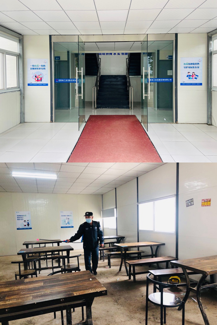 合肥潤迅數(shù)據(jù)中心項(xiàng)目部辦公區(qū)門口張貼防疫宣傳海報(bào)、食堂開展衛(wèi)生消殺