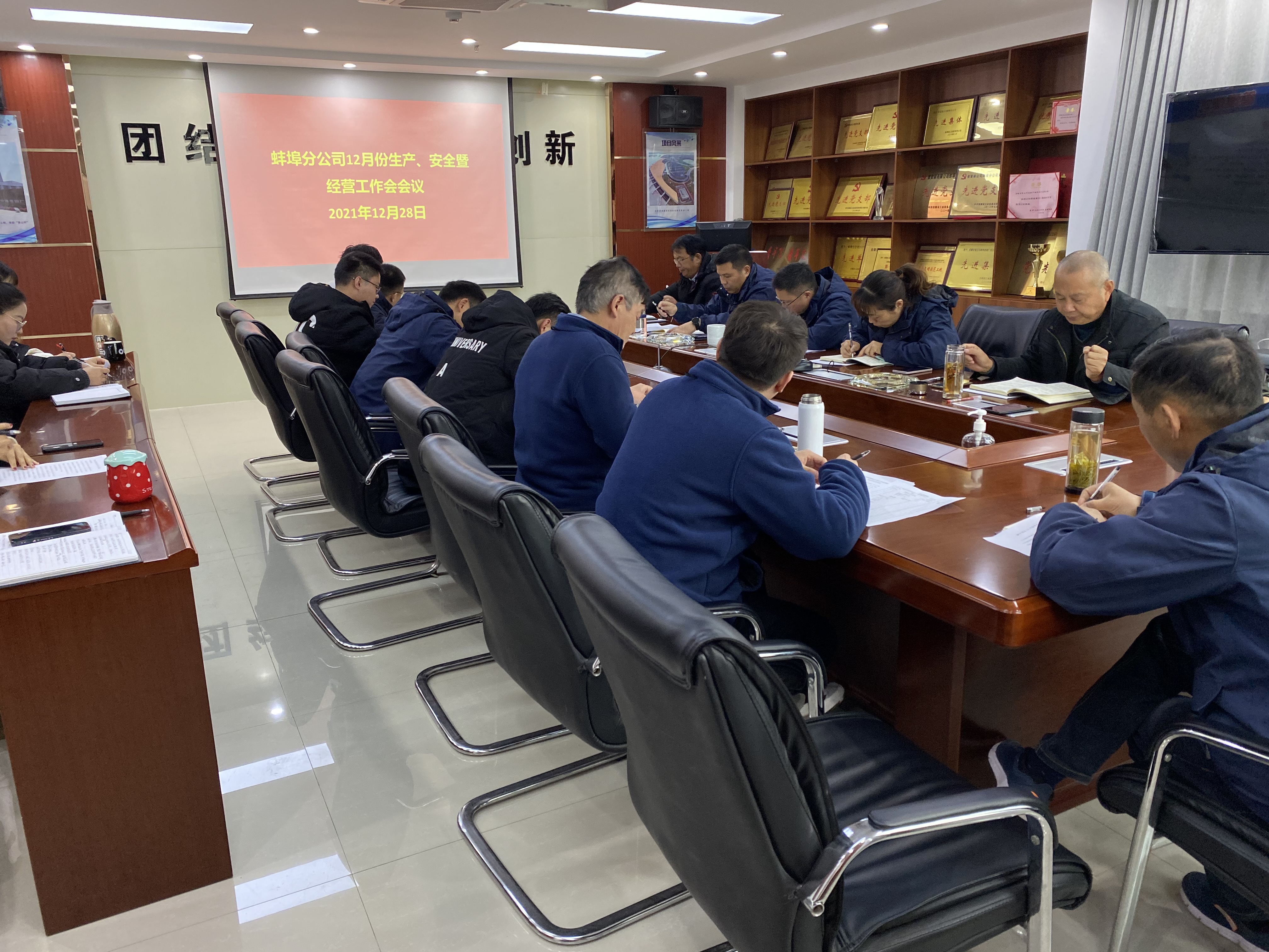 12月28日上午,蚌埠分公司組織召開2021年12月份生產(chǎn)、安全暨經(jīng)營工作會議,分公司領(lǐng)導(dǎo)班子成員、部門負(fù)責(zé)人、各在建項目經(jīng)理及工程管理部全體員工參會,會議由分公司副經(jīng)理郭洋主持。