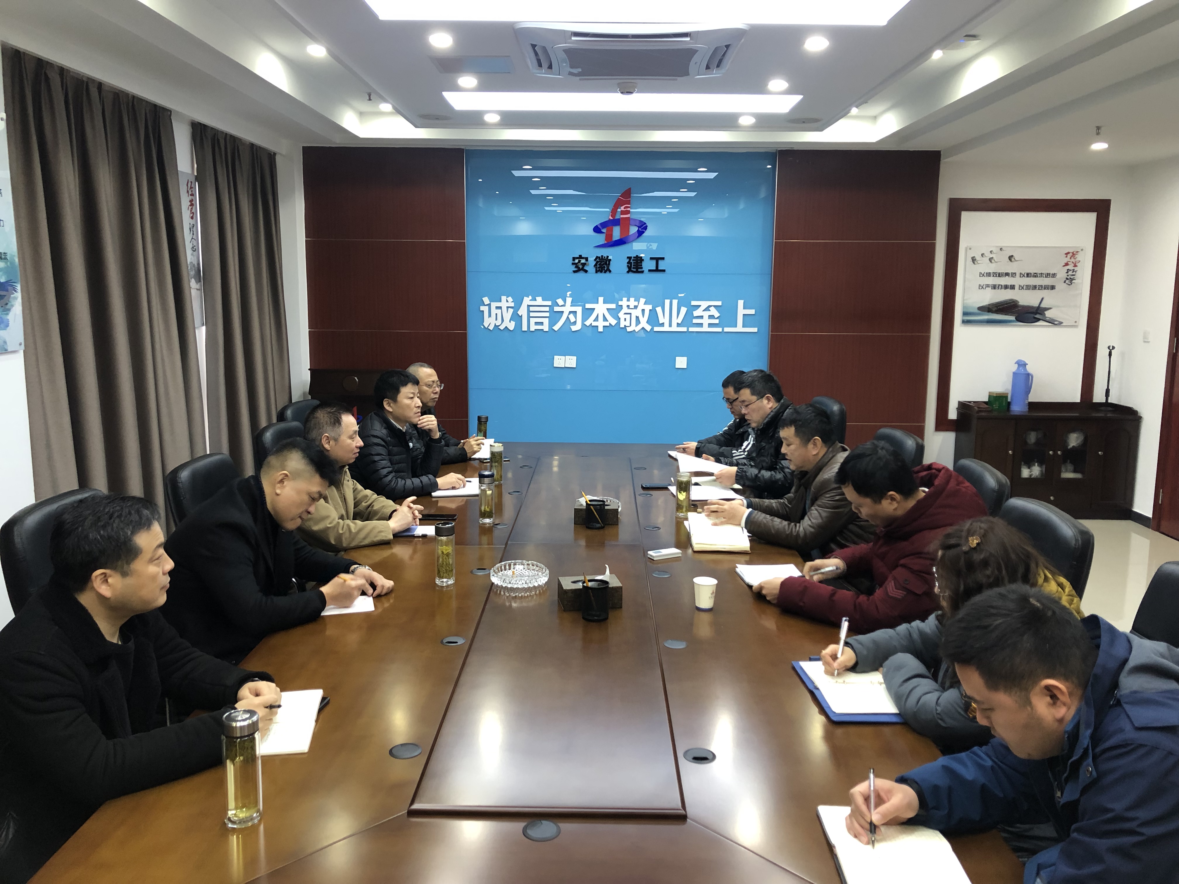 2月14日,公司黨委書記、董事長胡六中赴安慶分公司調(diào)研指導工作,公司副總經(jīng)理王軍、財務(wù)副總監(jiān)李雷、總經(jīng)理助理趙永峰、招標辦主任李紹林,分公司班子成員及機關(guān)、項目部員工參加會議。