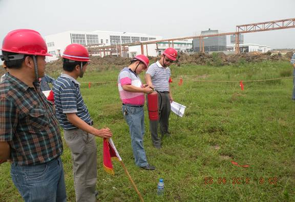 為全面開展好“全國安全生產(chǎn)月”應(yīng)急預(yù)案演練周活動,切實提高企業(yè)應(yīng)對突發(fā)火災(zāi)事故處理能力和水平,2010年6月23日,公司保衛(wèi)處和生產(chǎn)處牽頭在肥東豐樂農(nóng)化中間體項目現(xiàn)場進行了一次火災(zāi)事故應(yīng)急演練,副總經(jīng)理劉安俊擔任總指揮,各項目部均派人參加。
