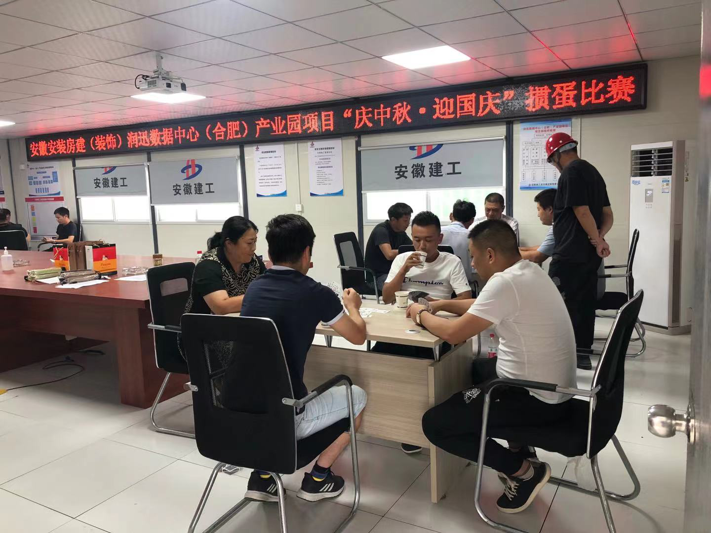 為豐富項(xiàng)目部員工的業(yè)余文化生活,營(yíng)造員工健康快樂的良好工作氛圍,9月20日下午,房建(裝飾)分公司潤(rùn)迅數(shù)據(jù)中心(合肥)產(chǎn)業(yè)園項(xiàng)目舉辦了“歡樂中秋·喜迎國(guó)慶””摜蛋”比賽。項(xiàng)目部全體成員及各分包隊(duì)計(jì)16名員工參加了本次比賽。