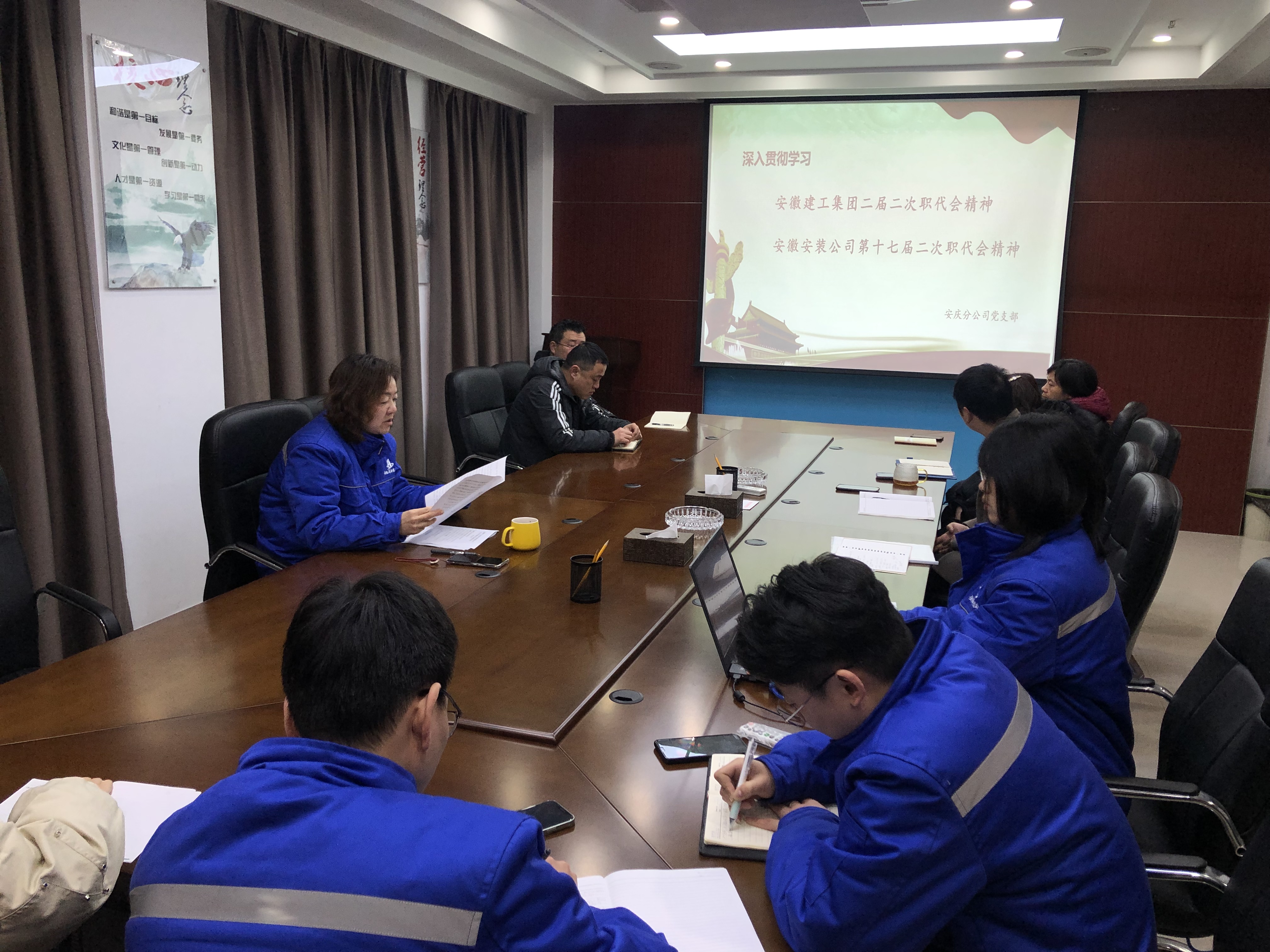 集團(tuán)公司、公司兩級(jí)職代會(huì)相繼召開之后,2月9日,安慶分公司結(jié)合實(shí)際,迅速在分公司機(jī)關(guān)和項(xiàng)目部分別組織召開了專題學(xué)習(xí)會(huì),積極開展學(xué)習(xí)宣貫兩級(jí)職代會(huì)精神。會(huì)議由分公司黨支部書記劉紅艷主持。