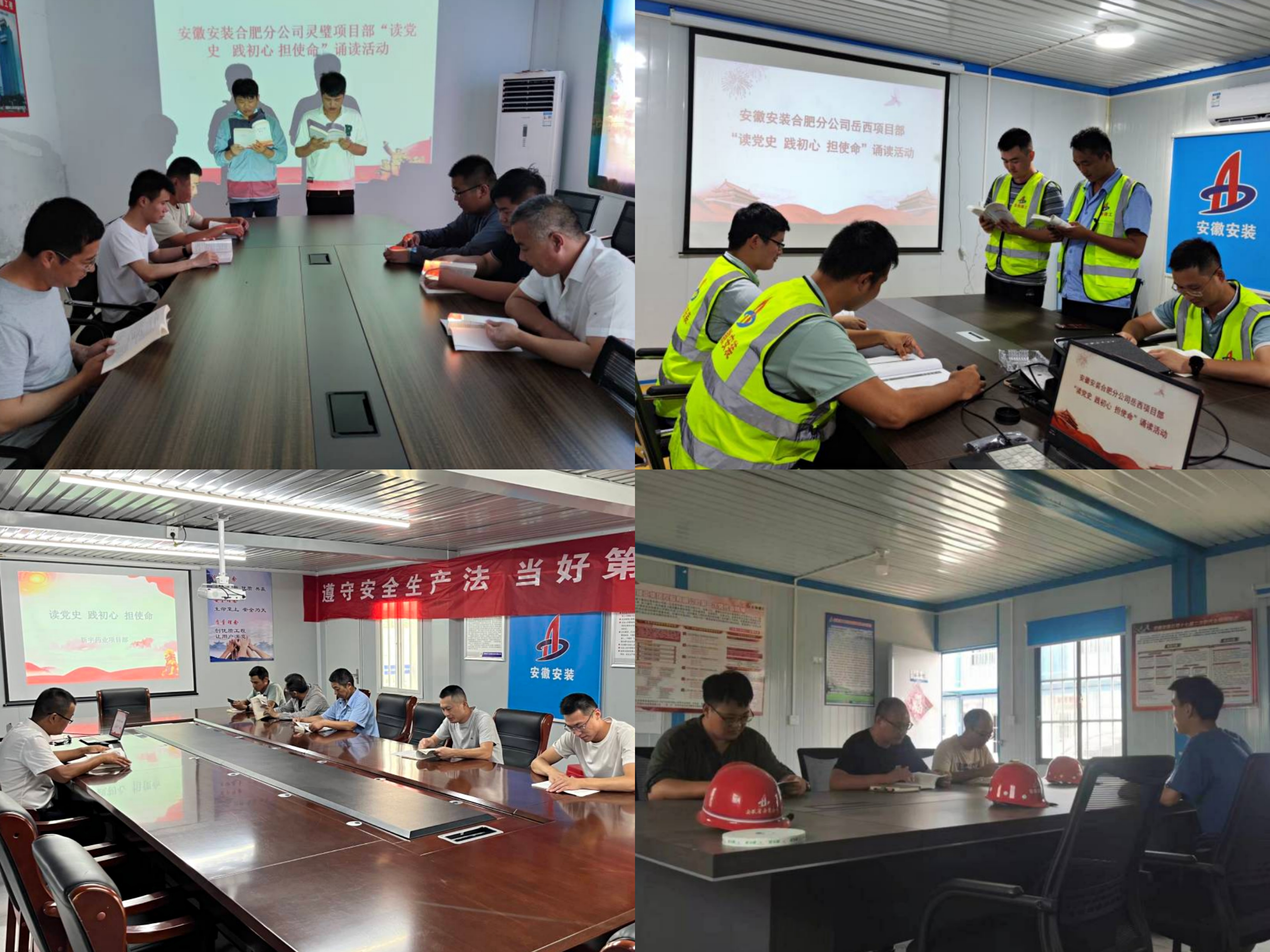 為慶祝中國共產黨成立101周年,進一步弘揚黨的光榮傳統(tǒng),重溫黨的光輝歷程,傳遞職工愛黨愛國情懷,“七一”前夕,合肥分公司黨支部組織開展了“讀黨史 踐初心 擔使命”誦讀活動。圍繞黨史相關文章、紅色詩詞、紅色家書、紅色故事等內容,分公司機關和項目部廣大黨員職工積極參與。