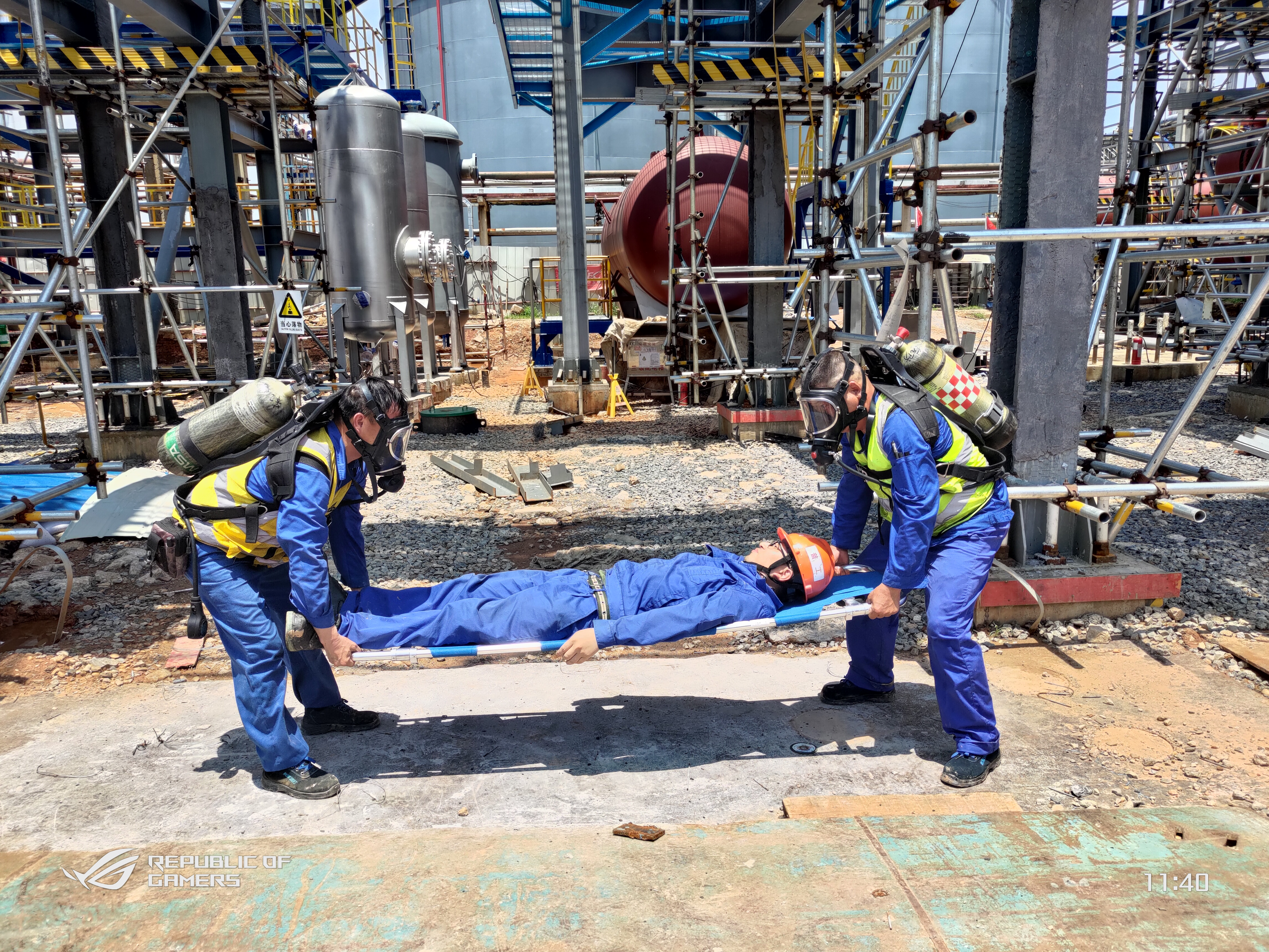 6月26日,在200萬噸/年污水汽提項目現場,模擬進行涉硫化氫中毒急救演練,通過演練對急救方式和應急措施進行宣貫,并取得較好的效果。