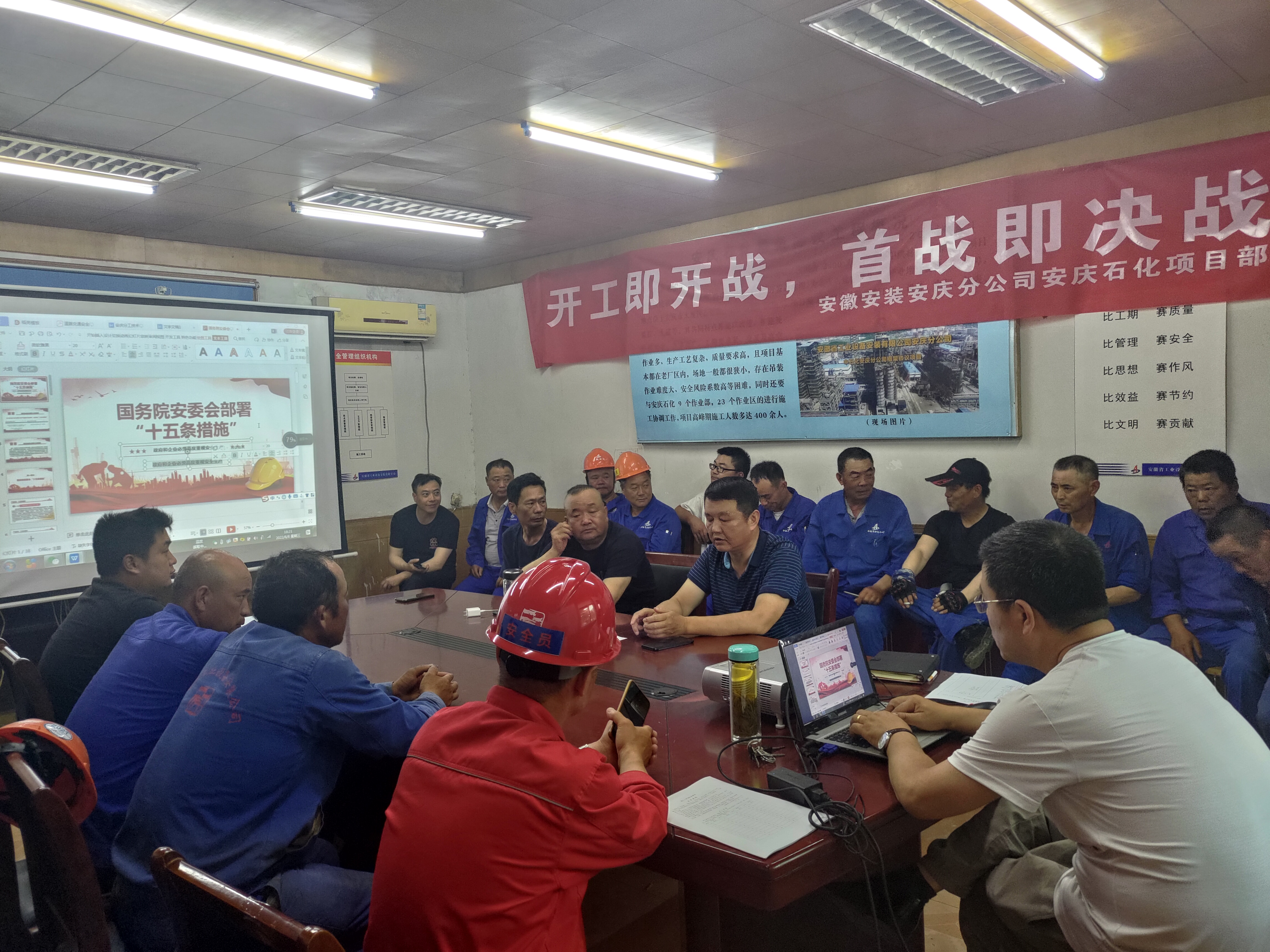 6月8日,在安慶石化項目部開展安全月集中宣講、培訓輔導活動,結合項目特點,對國務院十五條措施、新安全生產法、安慶石化交通安全、7+1直接作業(yè)環(huán)節(jié)管控等進行講座。