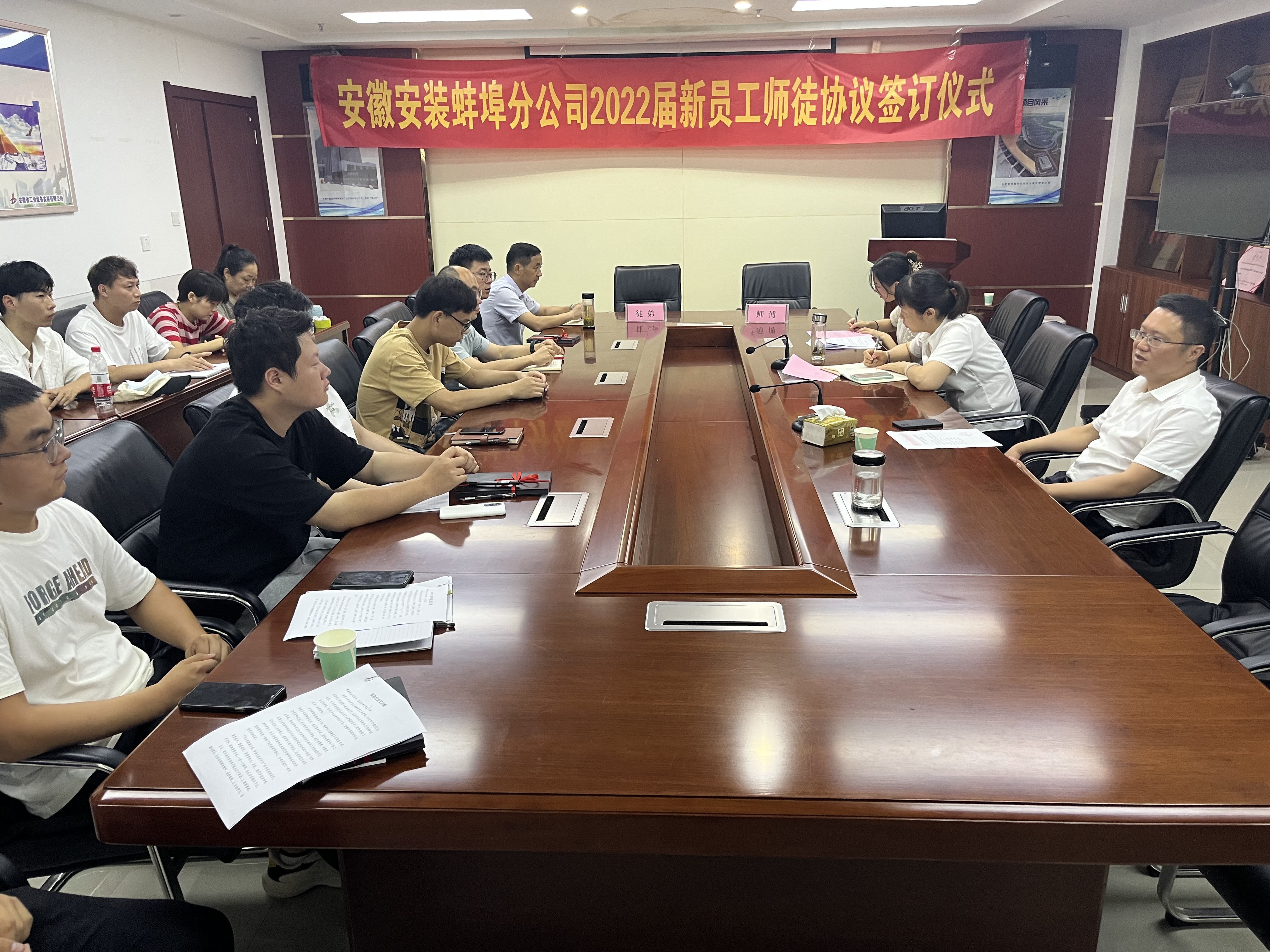 為使新員工盡快成長(zhǎng)成才,加速人才培養(yǎng),加強(qiáng)分公司人才梯隊(duì)建設(shè)。7月15日下午,蚌埠分公司黨支部舉行了“2022屆新員工師徒結(jié)對(duì)”簽訂儀式。分公司黨政主要領(lǐng)導(dǎo)、部門負(fù)責(zé)人、項(xiàng)目經(jīng)理、六對(duì)結(jié)對(duì)師徒參加了此次會(huì)議。
