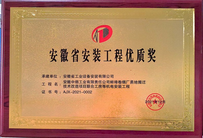 “安徽省安裝工程優(yōu)質獎”是安徽省安裝行業(yè)的最高工程質量獎,獲獎工程質量應達到省內(nèi)先進水平,由安徽省安裝和機械設備協(xié)會組織評選。此兩項獎項的獲得是對安徽安裝公司施工能力和項目質量的充分肯定,充分展現(xiàn)了公司機電工程建設領域的雄厚實力與強大競爭力。