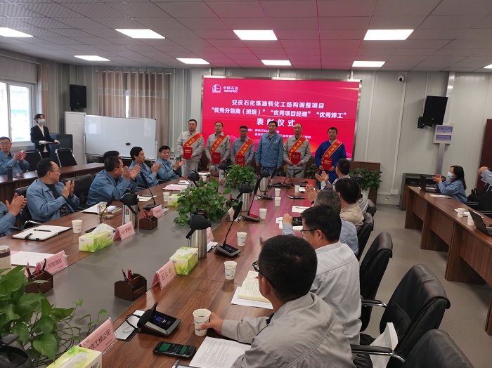 安慶石化副總經(jīng)理張業(yè)金宣讀表彰決定并作總結(jié)講話。他指出,在煉轉(zhuǎn)化項目執(zhí)行中,各參建單位圍繞項目目標(biāo)任務(wù),共克時艱、團結(jié)奮斗,取得了突出成績。并要求各參建單位和個人要向被表彰的先進看齊,學(xué)習(xí)先進、趕超先進,堅定信心、振奮精神,發(fā)揚“一家人,一條心,一個目標(biāo)一股勁”精神,共同推進安慶石化項目高質(zhì)量建成。