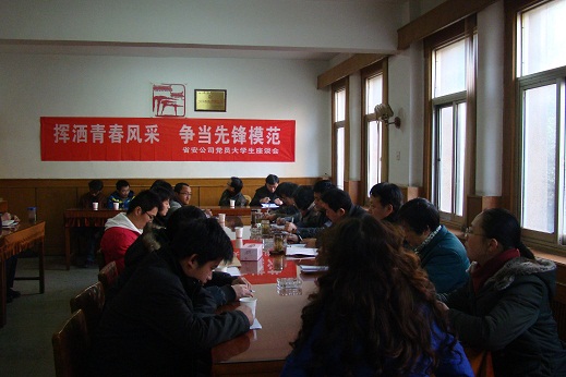 最后,戴書記聯(lián)系實際,就公司年輕大學生隊伍如何快速發(fā)展和發(fā)揮先鋒模范作用提出三點意見:一是年輕同志要著重從學習提高,實踐磨煉,作風養(yǎng)成三個方面把握自身成長規(guī)律,不斷提升自己。二是結(jié)合科學發(fā)展觀,堅持以人為本,尤其是對有沖勁、有干勁的在職大學生多關(guān)懷,積極構(gòu)筑公司“人本管理”模式,把建設一支高素質(zhì)人才隊伍、黨員隊伍貫穿創(chuàng)先爭優(yōu)活動的始終。三是對在職大學生如何健康成長、快樂成才提出殷切希望:一要保持積極的心態(tài),要善于穩(wěn)定情緒,合理的進行自我減壓,主動與人有效溝通;二要保持務實的工作作風,踏實努力,加強執(zhí)行力的鍛煉;三要保持良好的形象,由內(nèi)而外的提升自己的素養(yǎng)。在新的一年里,希望大學生黨員在各自的崗位上率先垂范,彰顯風采,把“揮灑青春風采,爭當先鋒模范”精神延伸到項目文化、企業(yè)文化和機關(guān)效能建設中去,為公司三個文明建設的進一步加強和未來三年大發(fā)展夯實思想、隊伍、管理基礎,為公司的“十二五”發(fā)展貢獻力量。