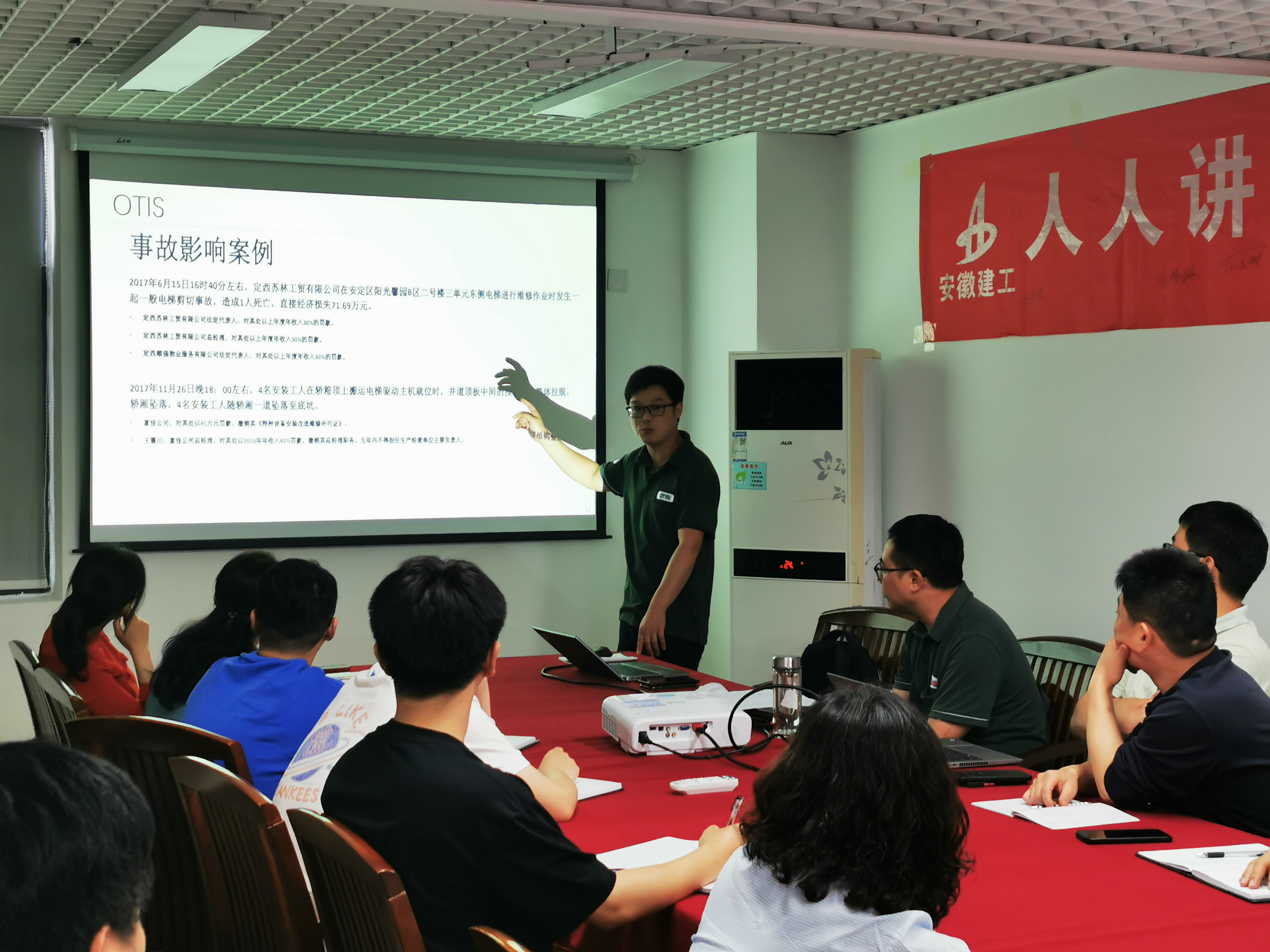 培訓(xùn)由奧的斯電梯(中國(guó))有限公司安徽分公司安全工程師徐長(zhǎng)江、項(xiàng)目經(jīng)理張文翔及調(diào)試工程師王威為大家授課。三位授課老師結(jié)合多年從事電梯行業(yè)的經(jīng)驗(yàn),從安全管理責(zé)任、安全教育培訓(xùn)、安全事故案例分析、電梯安裝調(diào)試中易錯(cuò)點(diǎn)及電梯安裝行業(yè)容易導(dǎo)致重傷及死亡事故的原因等方面全面、系統(tǒng)地講解了電梯施工現(xiàn)場(chǎng)容易出現(xiàn)的各類(lèi)安全隱患,深度剖析了隱患可能引發(fā)的各類(lèi)安全事故,各種事故隱患的防護(hù)措施及在發(fā)生緊急情況時(shí)如何做好事故處理等。