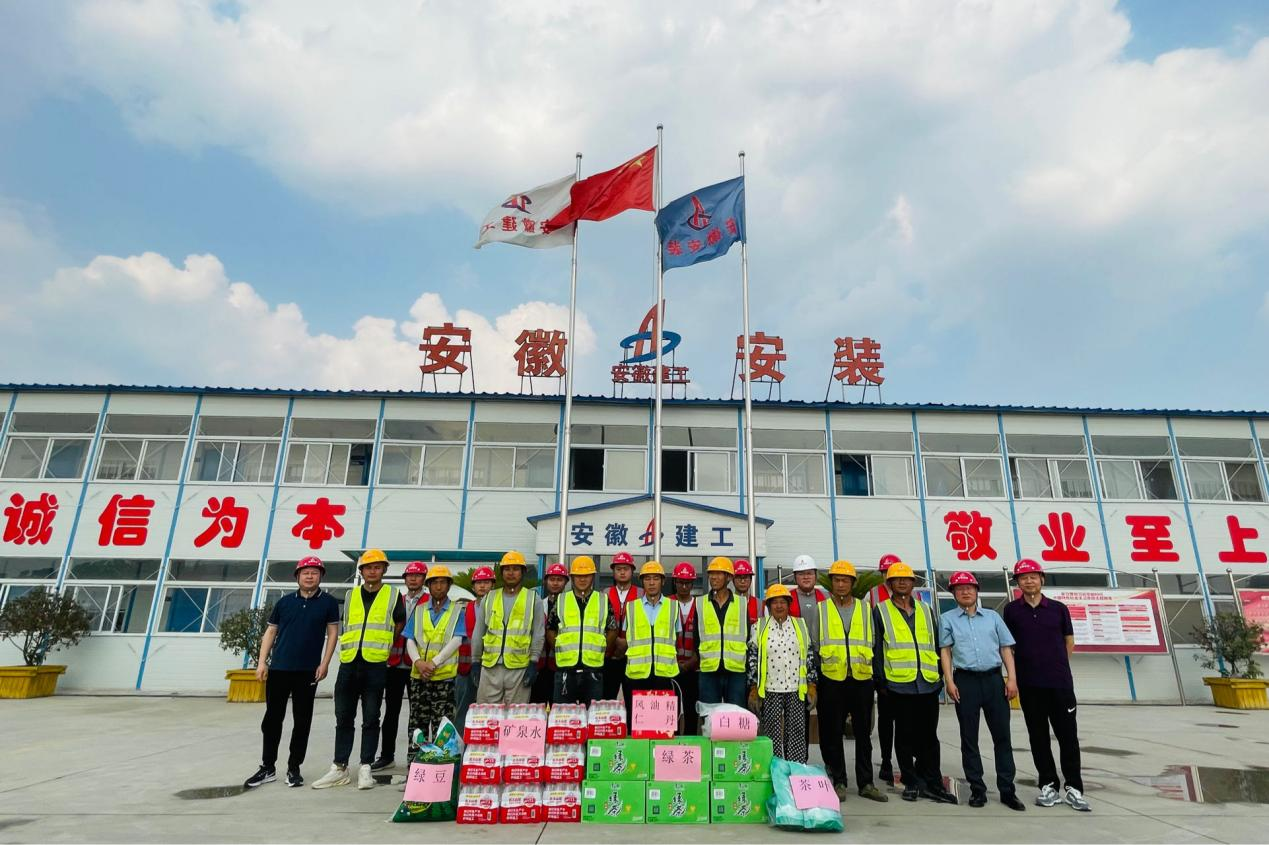 近日高溫來襲,為做好夏季高溫作業(yè)勞動保護工作,6月13日下午,蚌埠分公司經(jīng)理、黨支部副書記趙銘亮,黨支部書記、副經(jīng)理王偉,副經(jīng)理趙榮珣前往輝隆項目部開展送清涼慰問活動,為項目部管理人員和工人們免費發(fā)放防暑降溫清涼物資。