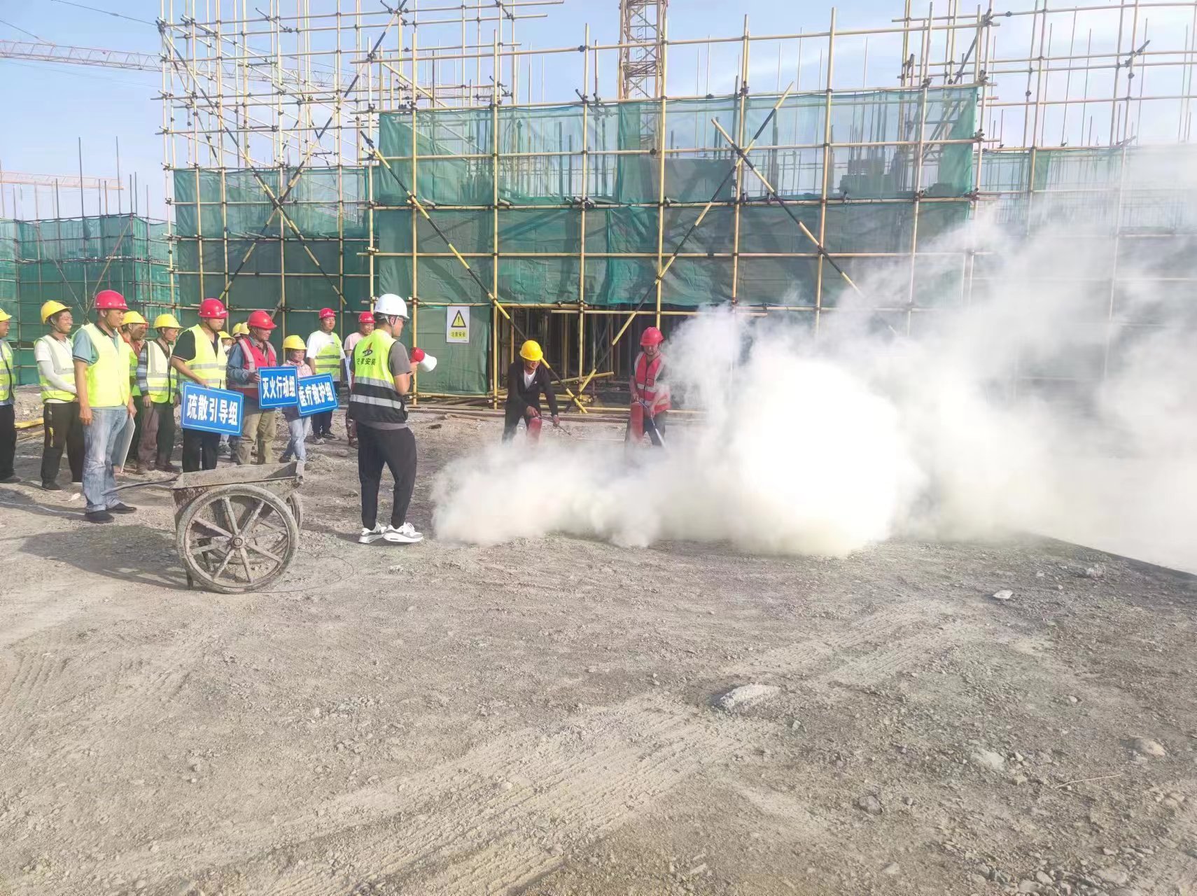 為更好的提高項(xiàng)目現(xiàn)場(chǎng)人員對(duì)突發(fā)情況的應(yīng)急處理能力,檢驗(yàn)應(yīng)急預(yù)案的可行性,6月20日,建工安裝烏蘇市南苑新城小區(qū)住宅樓建設(shè)工程項(xiàng)目組織開展消防演練。