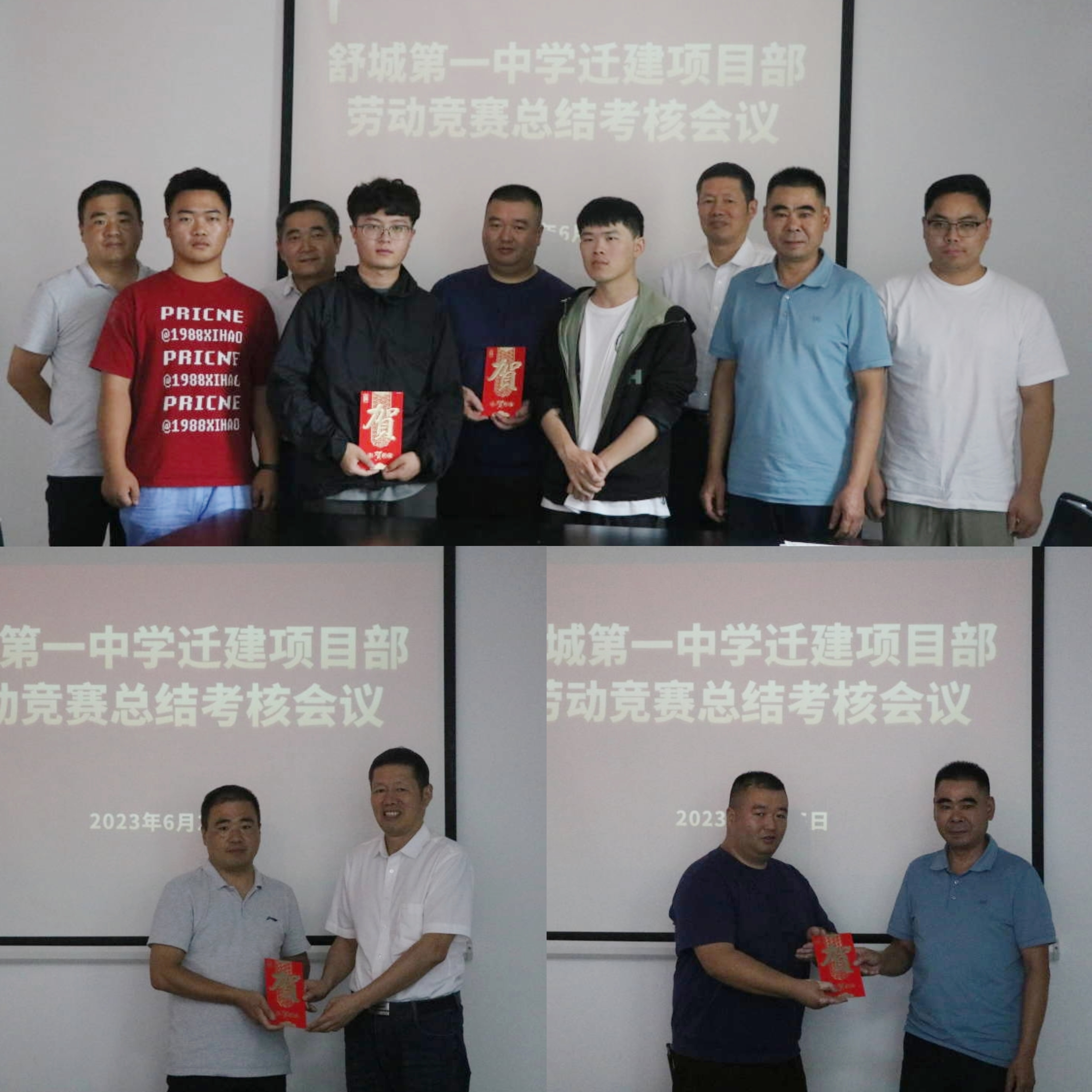 6月25日,市政分公司黨支部書記胡迎東、副經(jīng)理張漢軍赴舒城一中遷建工程項(xiàng)目部開展項(xiàng)目勞動(dòng)競(jìng)賽考核工作。項(xiàng)目部全體管理人員及勞務(wù)班組代表參加。