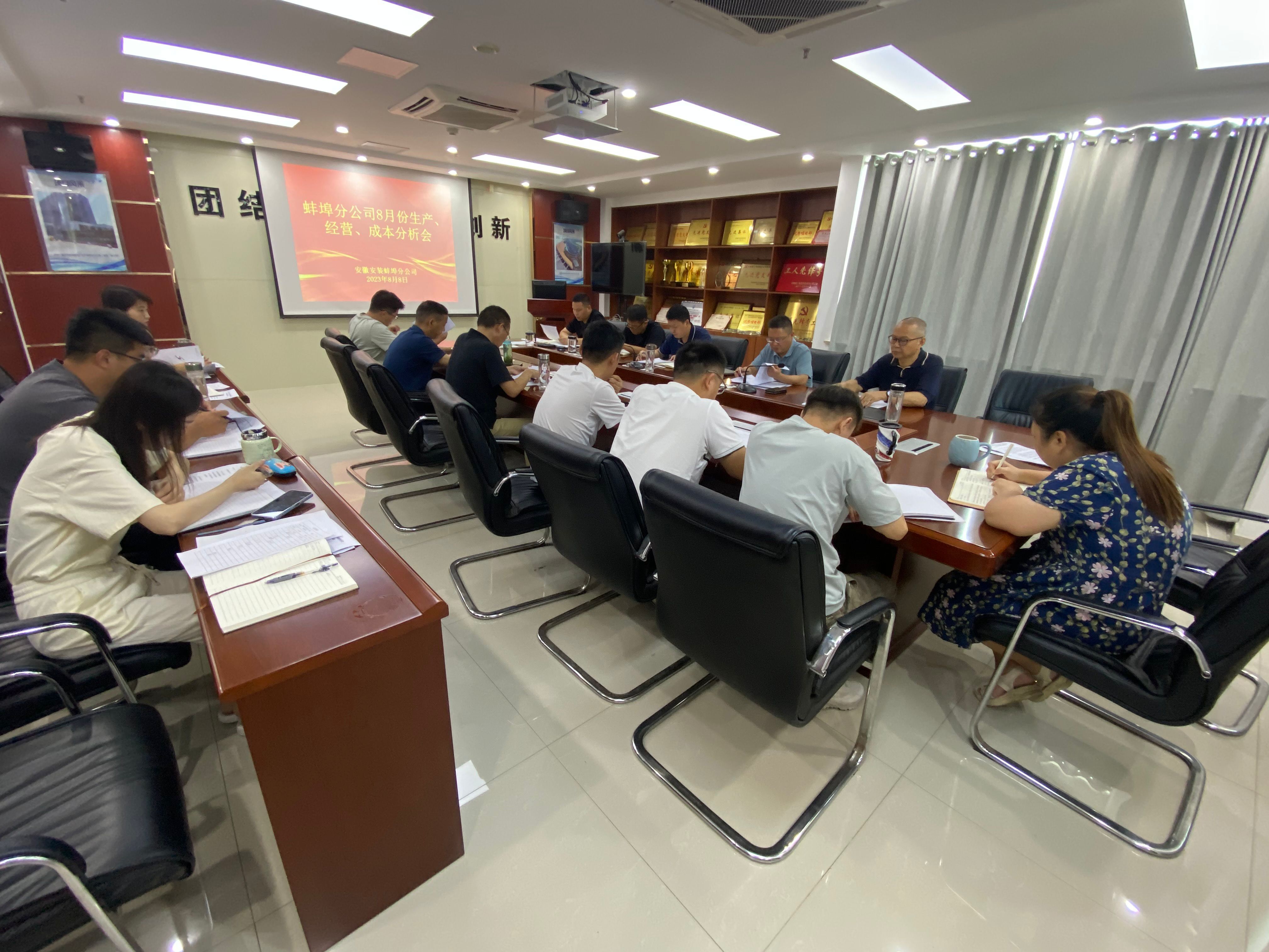 8月8日上午,蚌埠分公司組織召開8月份生產(chǎn)、經(jīng)營、成本分析會(huì),分公司領(lǐng)導(dǎo)班子、所屬各項(xiàng)目負(fù)責(zé)人、機(jī)關(guān)各部門負(fù)責(zé)人及工程管理部全體員工參加會(huì)議,會(huì)議由分公司副經(jīng)理郭洋主持。