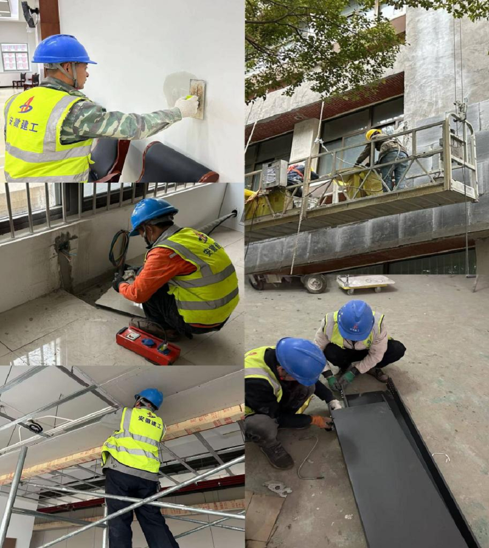 建工安裝滁州分公司安徽理工大學(xué)維修改造項(xiàng)目(二期)位于合肥市長(zhǎng)豐縣雙鳳路與鳳霞路交口,施工內(nèi)容主要為對(duì)已有實(shí)訓(xùn)樓、產(chǎn)教融合樓、綜合服務(wù)中心、生活服務(wù)次中心四個(gè)單體合計(jì)約3萬(wàn)平方米的維修、改造、安裝以及室外附屬工程給排水、景觀、鋪裝、綠化等。目前,通過項(xiàng)目全體員工夜以繼日、分秒必爭(zhēng)的奮斗,生活服務(wù)次中心已基本完工,實(shí)訓(xùn)樓施工完成約60%,產(chǎn)教融合樓施工完成約70%,綜合服務(wù)中心完成約75%,外墻真石漆及屋面保溫完成約50%。