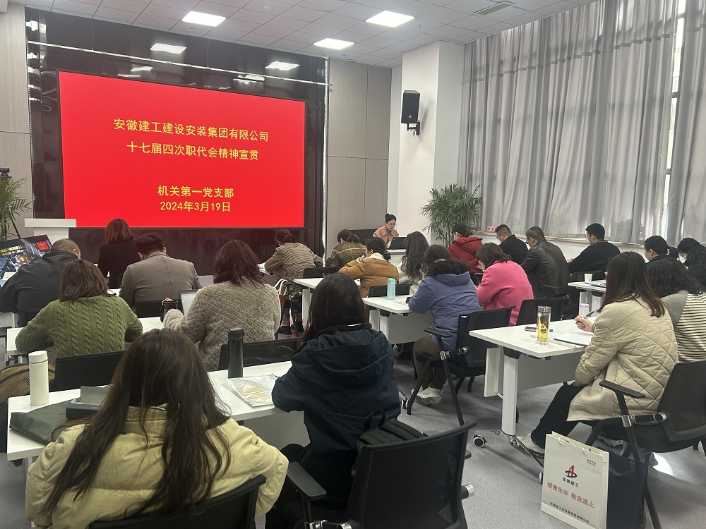 為全面領會集團、公司兩級職代會精神,機關第一黨支部書記余群詳細解讀了建工控股黨委書記、董事長楊善斌的講話和集團《工作報告》,并重點對公司黨委書記、董事長胡六中的講話和《工作報告》進行了宣貫。