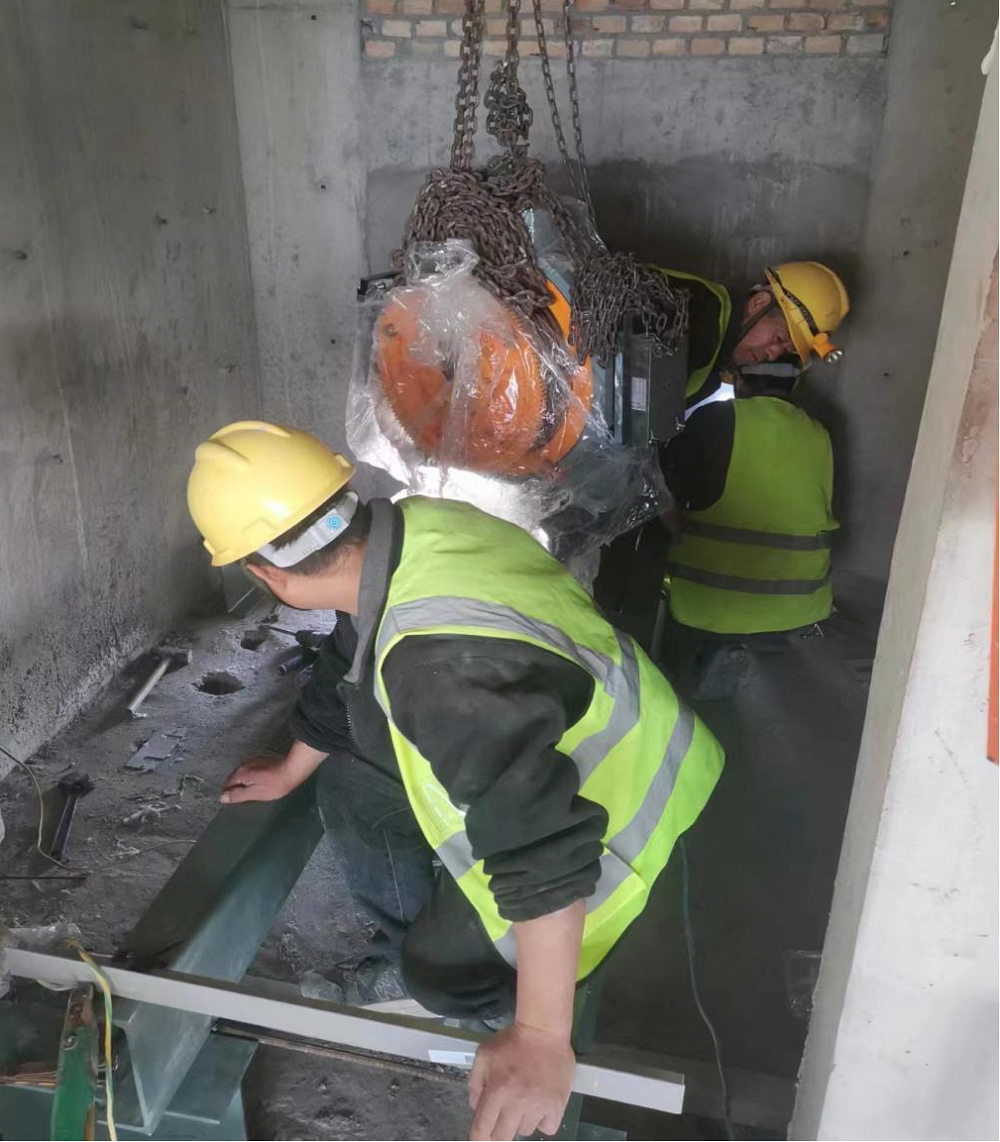 肥西縣鄉(xiāng)村文化旅游配套提升項(xiàng)目現(xiàn)場(chǎng)人員正在給到貨電梯卸貨