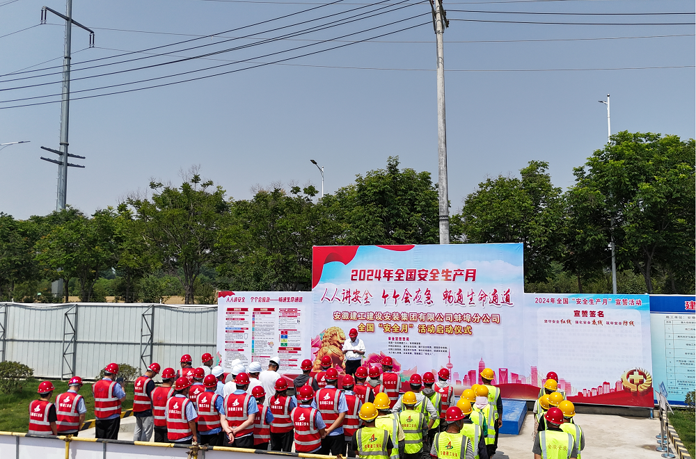 正值第23個(gè)全國(guó)“安全生產(chǎn)月”到來(lái)之際,5月31日上午,蚌埠分公司在宿州深巖項(xiàng)目開(kāi)展“安全生產(chǎn)月”活動(dòng)啟動(dòng)儀式,分公司領(lǐng)導(dǎo)班子、部門(mén)負(fù)責(zé)人、各項(xiàng)目班子及安全負(fù)責(zé)人、深巖項(xiàng)目業(yè)主及監(jiān)理代表、項(xiàng)目部全體員工50余人參加本次啟動(dòng)儀式。