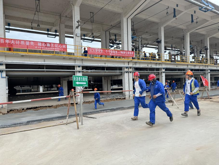 6月18日,為進(jìn)一步提高項(xiàng)目部全員安全防范意識(shí)和安全事故應(yīng)急能力,檢驗(yàn)應(yīng)急預(yù)案的可執(zhí)行性,使人員掌握應(yīng)急救援運(yùn)行程序和方法,提高應(yīng)急救援小組應(yīng)急處置和協(xié)調(diào)作戰(zhàn)的能力,分公司在鐵路卸苯項(xiàng)目上聯(lián)合萬(wàn)緯監(jiān)理單位開展應(yīng)急逃生演練。
