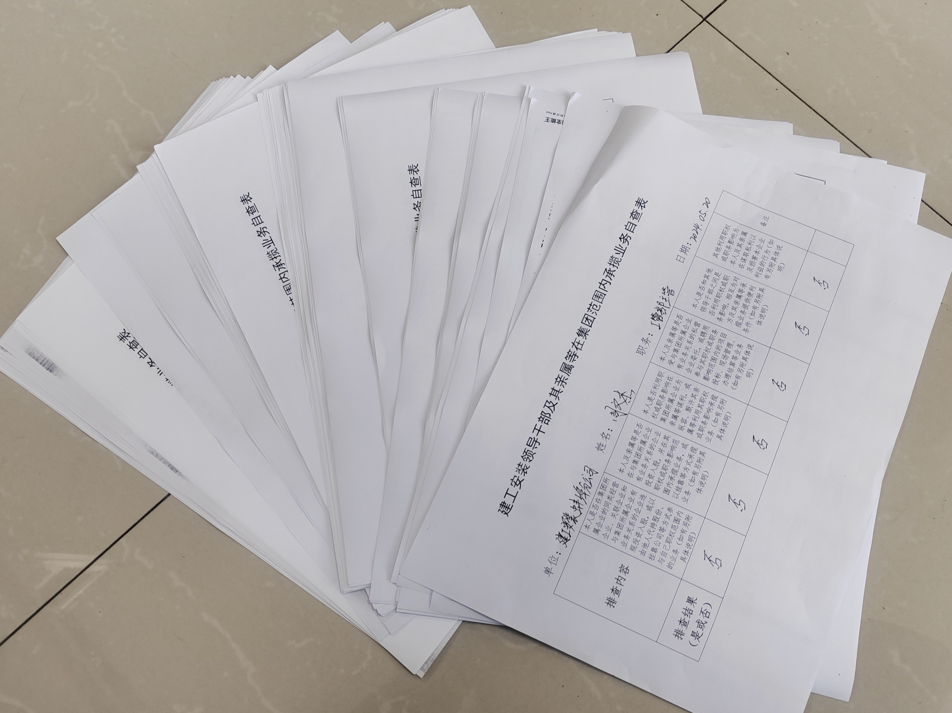 《建工安裝領(lǐng)導(dǎo)干部及其親屬等在集團(tuán)范圍內(nèi)承攬業(yè)務(wù)自查表》