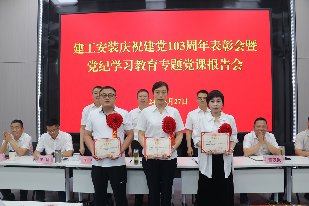為慶祝中國共產(chǎn)黨成立103周年,扎實推進黨紀學習教育走深走實。6月27日上午,建工安裝黨委召開慶祝建黨103周年表彰會暨黨紀學習教育專題黨課報告會。公司領導班子成員出席會議,會議由公司黨委副書記、副總經(jīng)理周正平主持。