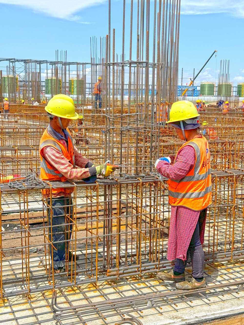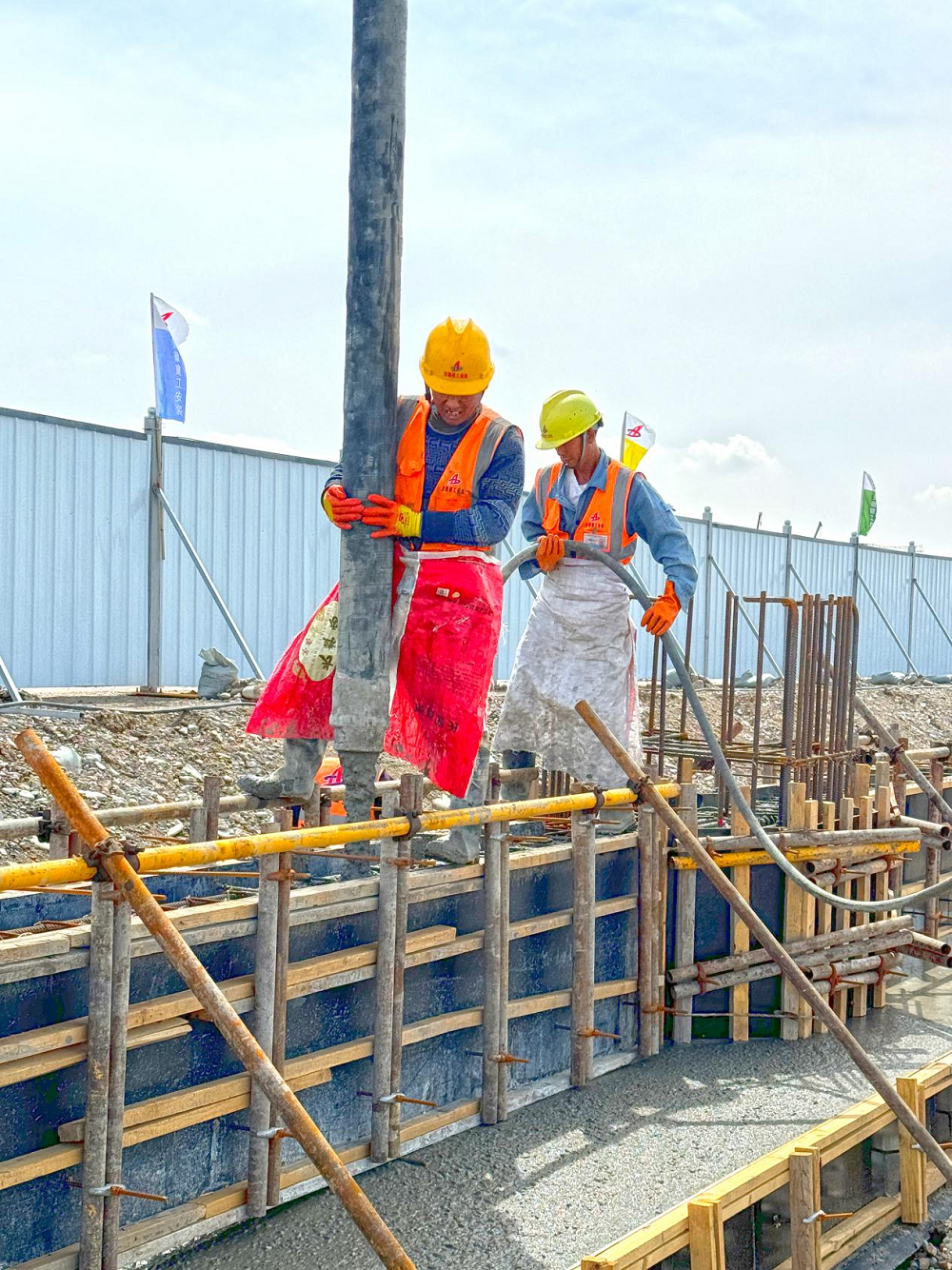 該項目施工現(xiàn)場人頭攢動,機械轟鳴,駐場技術(shù)人員頭頂烈日、靠前指揮,施工工人往來穿梭,或支設(shè)模板,或綁扎鋼筋,與夏競速,“激戰(zhàn)”正酣。項目工期緊任務(wù)重,為搶進度、嚴安全、保工期、抓質(zhì)量,項目部嚴格制定施工進度計劃,統(tǒng)籌安排施工人、材、機,合理高效進場施工作業(yè),目前項目正在進行變電所及廠房的基礎(chǔ)工程。