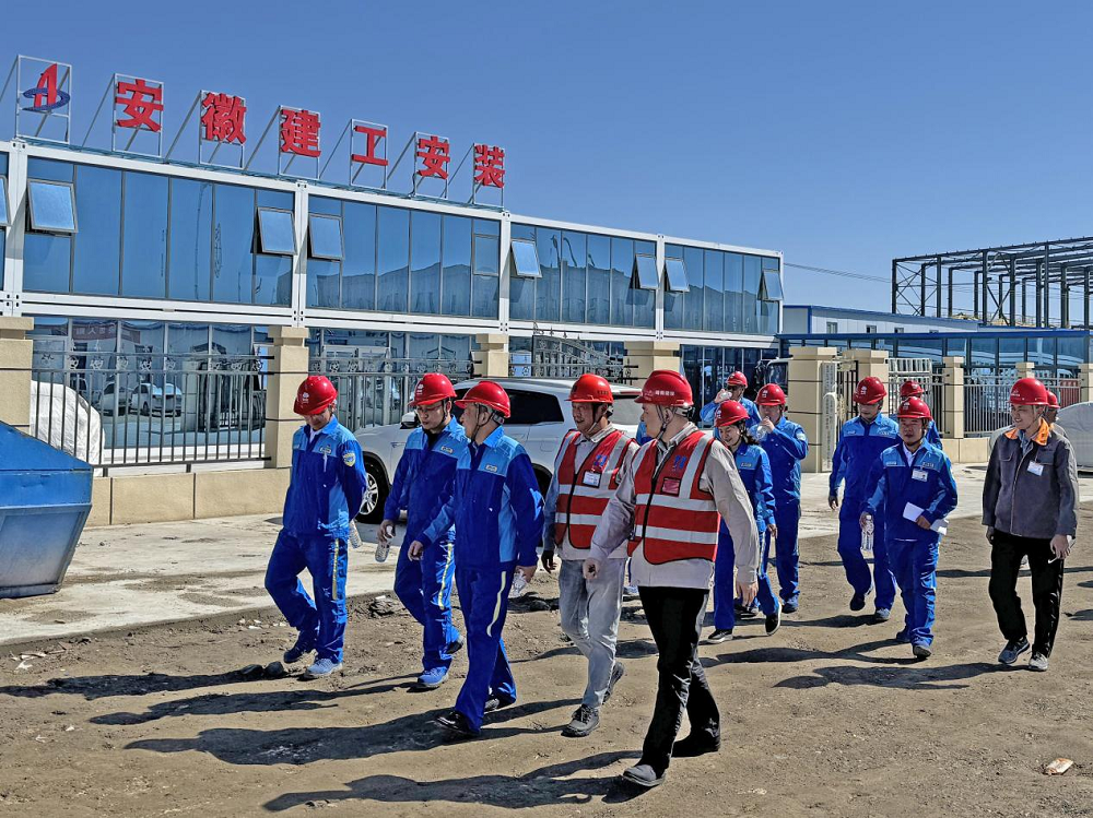 魏業(yè)秋一行深入施工現(xiàn)場,對各個施工區(qū)域進行了實地察看,詳細(xì)了解了項目建設(shè)進度、文明施工、安全管理、環(huán)境保護、質(zhì)量控制等各方面情況。盡管本項目因圖紙未完善,導(dǎo)致開工時間滯后于合同約定節(jié)點一個多月,但項目團隊通過努力,成功壓縮工期半個月完成基礎(chǔ)交安工作,為后續(xù)廠房封閉奠定了堅實基礎(chǔ)。調(diào)研組充分肯定了建工安裝項目團隊所取得的成績,接著與項目管理人員就項目建設(shè)現(xiàn)狀及下一步總體建設(shè)工作計劃進行了交流。此次調(diào)研不僅讓工程總承包充分了解了項目的進展情況,同時也為我方下一步工作的順利開展奠定了堅實基礎(chǔ)。
