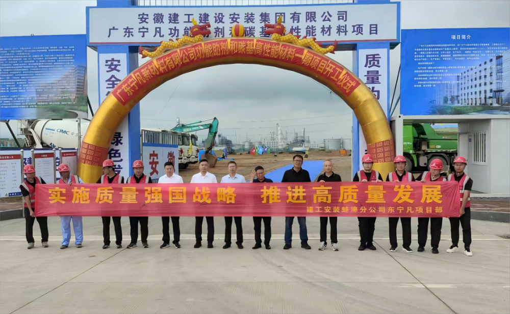 建工安裝黨委書記、董事長朱珍宏出席建工安裝蚌埠分公司廣東寧凡新材料有限公司功能助劑和碳基高性能材料一期項(xiàng)目質(zhì)量月活動(dòng)啟動(dòng)儀式