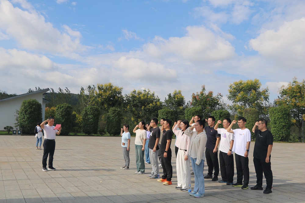 鏡園革命烈士紀念碑在陽光的照耀下莊嚴肅穆,黨員們懷著崇敬的心情,整齊列隊于紀念碑前,表達對先烈們的深切緬懷和無限哀思。在這片承載著歷史記憶的土地上,大家仿佛看到了革命先烈們?yōu)榱藝业莫毩ⅰ⒚褡宓慕夥?,不惜拋頭顱、灑熱血,用生命譜寫的壯麗篇章。全體黨員進行了集體宣誓,重溫入黨誓詞。