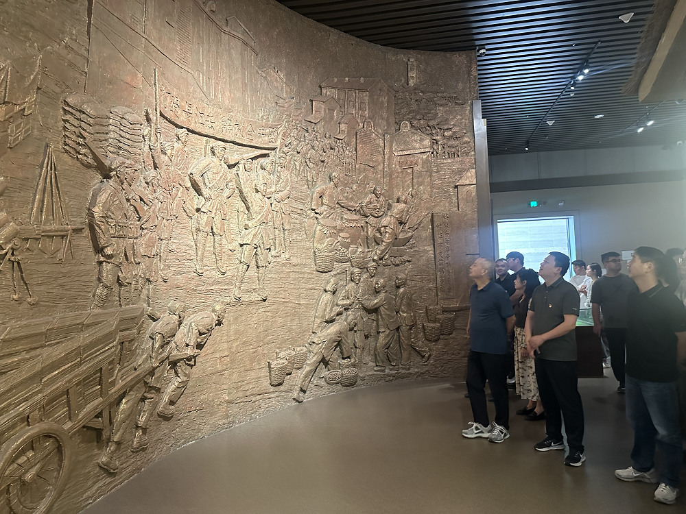 在博物館內(nèi),大家重點參觀了淮河流域自古以來抗擊洪水來襲的可歌可泣的生動場面,以及新中國治理江淮的各項水利國防工程。在參觀抗倭英雄湯和、渡江戰(zhàn)役等愛國展區(qū)時,參觀人員仿佛穿越時空,身臨其境般重溫了那段烽火歲月。