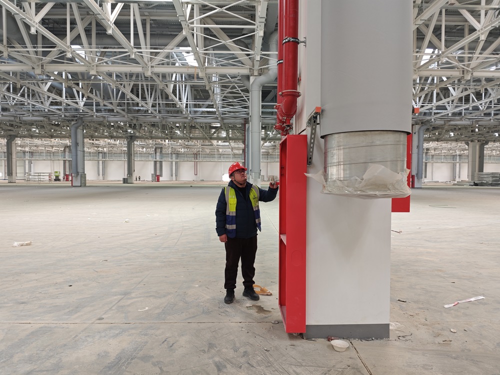 作為集團重點項目的重要組成部分,建工安裝合肥分公司承接了單體面積最大的沖焊車間和工藝要求最高的能源中心兩個單體的安裝工程,造價達3.36億元。這是多年來公司承擔(dān)的最大體量的安裝工程。然而,這兩個單體的安裝工程面臨著諸多棘手的難題:工期緊張得如同拉滿的弓弦,絲毫容不得半點懈??;高空交叉作業(yè)頻繁,平均高度在13米左右,這對施工安全和安裝技術(shù)要求提出了極高的挑戰(zhàn);必須確保在2024年10月25日完成車間首開區(qū)頂部管線安裝,以滿足工藝設(shè)備廠家的進場條件。