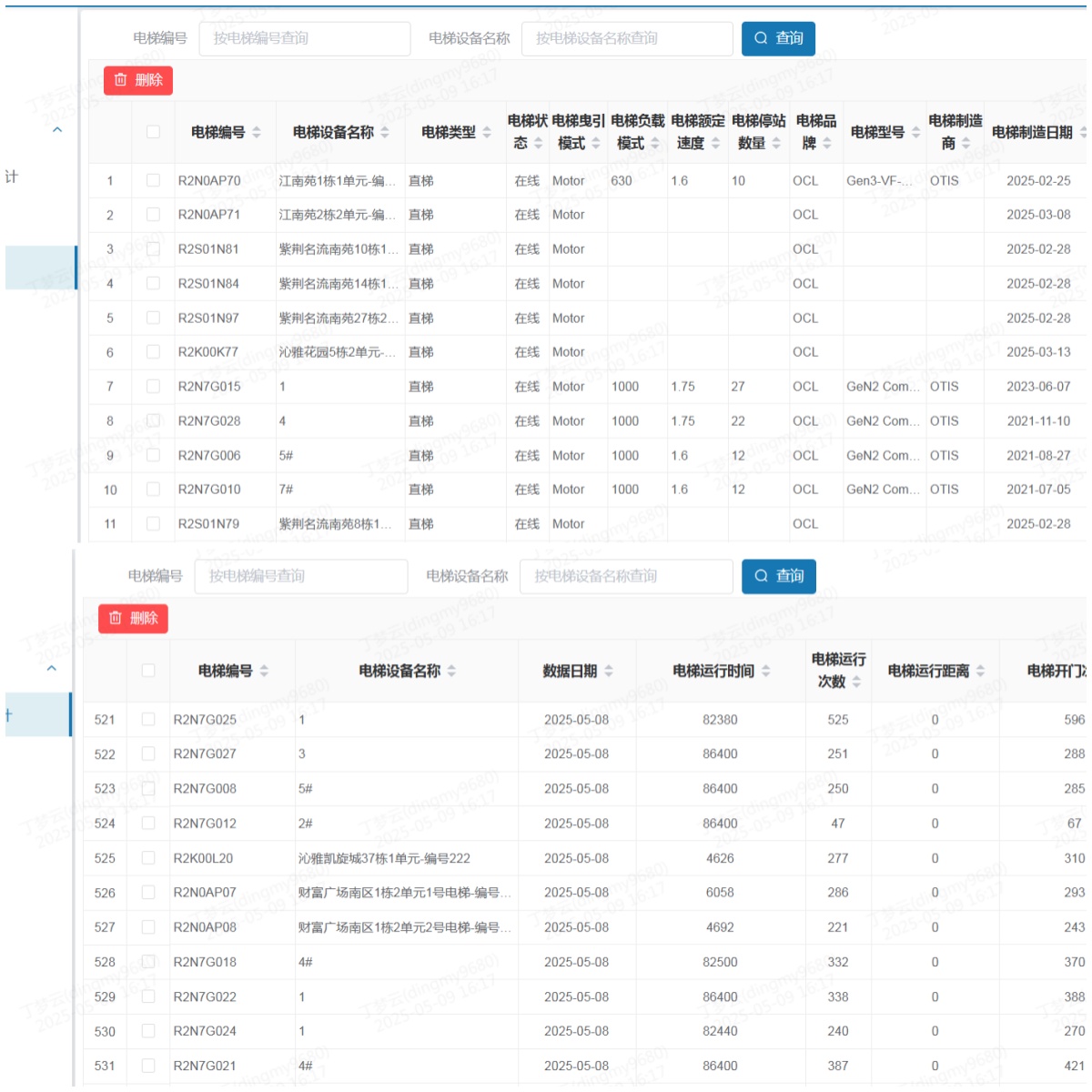 新搭建的電梯管理模塊構(gòu)建起高效的數(shù)據(jù)互通橋梁,不僅能夠?qū)崟r獲取已上線電梯編號、電梯設(shè)備名稱等各項基礎(chǔ)數(shù)據(jù),還能精準(zhǔn)監(jiān)測電梯運行時間、運行距離、運行次數(shù)、開門次數(shù)等動態(tài)數(shù)據(jù)信息。該系統(tǒng)可全程追蹤電梯召修記錄,詳細(xì)記錄召修維保上報時間、電梯維保人員到場時間,以及電梯故障處理過程、因故障困人后的解救時間等信息。這些數(shù)據(jù)的全面整合與實時呈現(xiàn),能夠全方位、立體化掌握每臺電梯的運行狀態(tài)及故障率,增強(qiáng)了電梯運行的安全性和可靠性,有效提升電梯維保效率。