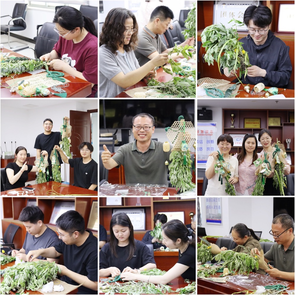 活動現(xiàn)場,大家首先學習了端午節(jié)的由來、習俗,以及艾草在端午文化中的特殊寓意,在手工包裝艾葉花束環(huán)節(jié),大家熱情投入,小心翼翼地整理清香撲鼻的艾葉,用五彩絲線仔細纏繞,將一片片艾葉變成了精致的艾葉花束。有人別出心裁地將艾葉花束編織成愛心、花朵的形狀,有人則在絲線上系上小巧的鈴鐺,隨著動作發(fā)出清脆聲響?,F(xiàn)場歡聲笑語不斷,大家互相展示作品,分享制作心得,平日里緊張忙碌的工作在此刻被輕松愉悅氛圍取代。