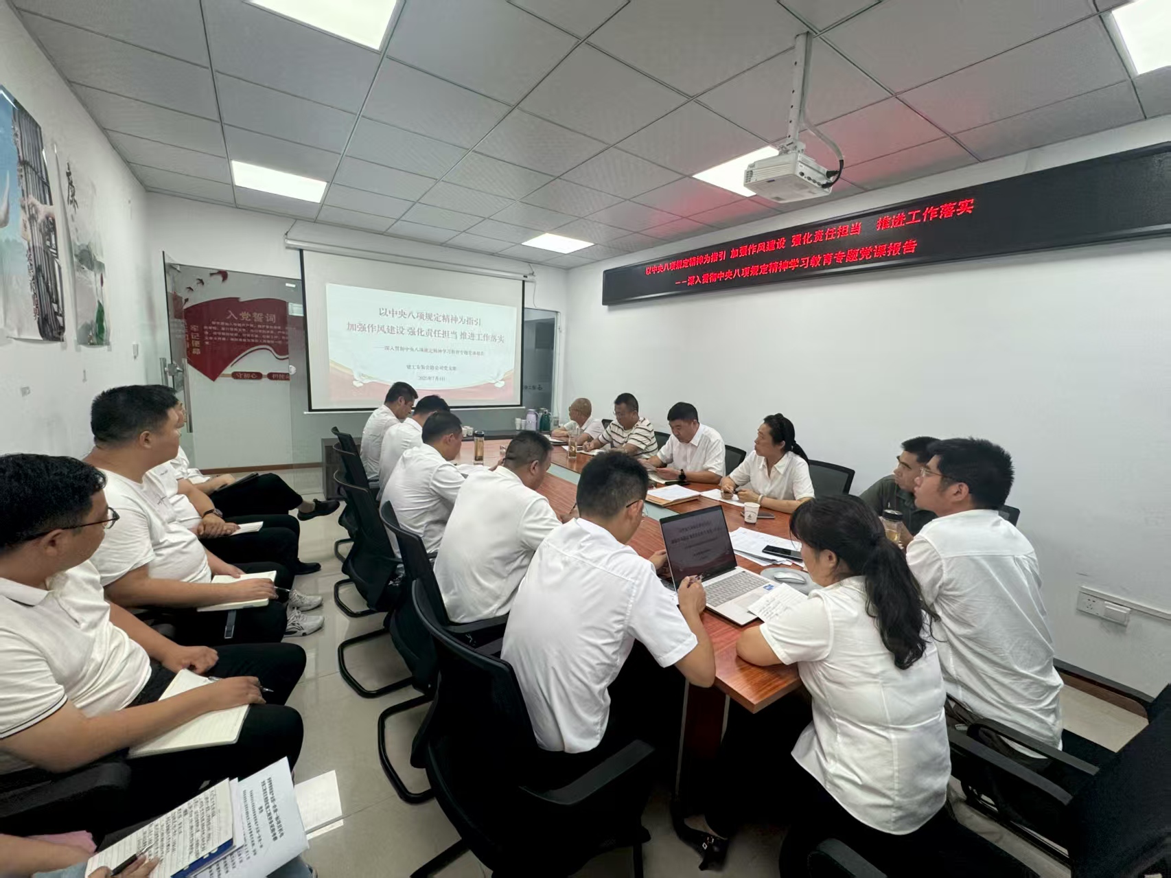 會(huì)議最后,公路公司經(jīng)理、黨支部書(shū)記黃彥濤還以《以中央八項(xiàng)規(guī)定精神為指引 加強(qiáng)作風(fēng)建設(shè) 強(qiáng)化責(zé)任擔(dān)當(dāng) 推進(jìn)工作落實(shí)》為題,為全體與會(huì)人員上了一堂深入貫徹中央八項(xiàng)規(guī)定精神學(xué)習(xí)教育專題黨課。