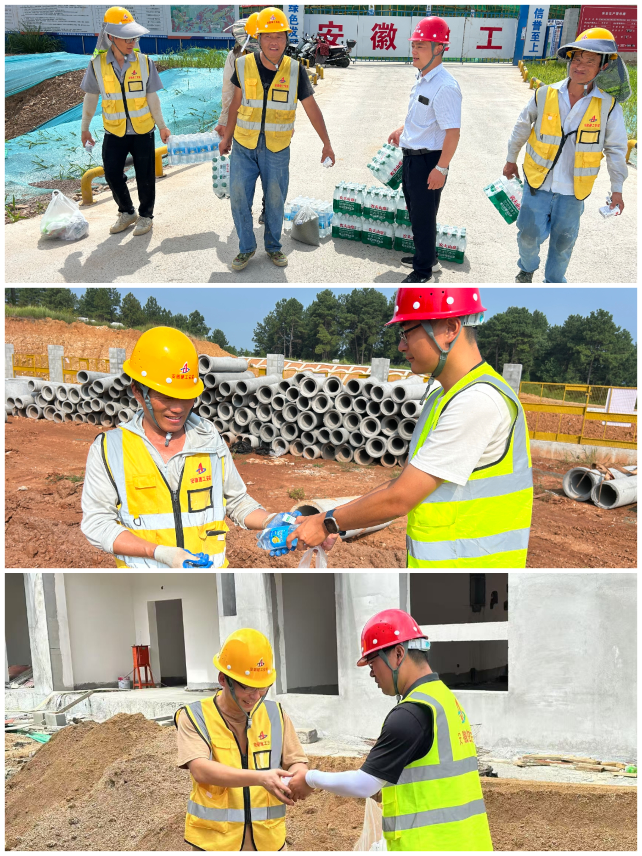 為了保障工人高溫作業(yè)安全,項目部采取“忙兩頭、歇中間”錯峰施工的方式,把早班時間調(diào)整為早上6:00至10:30,下午3:00點到7:00,避開高溫時段,減少高溫時段工人的室外作業(yè)。同時,為落實高溫季節(jié)安全生產(chǎn)工作的有關(guān)要求,項目結(jié)合“夏日送清涼”“安全演練”等活動,及時發(fā)放綠豆湯、鹽汽水、藿香正氣水、仁丹、風(fēng)油精等防暑降溫物資,確保作業(yè)人員生命安全和生產(chǎn)秩序的正常進行。